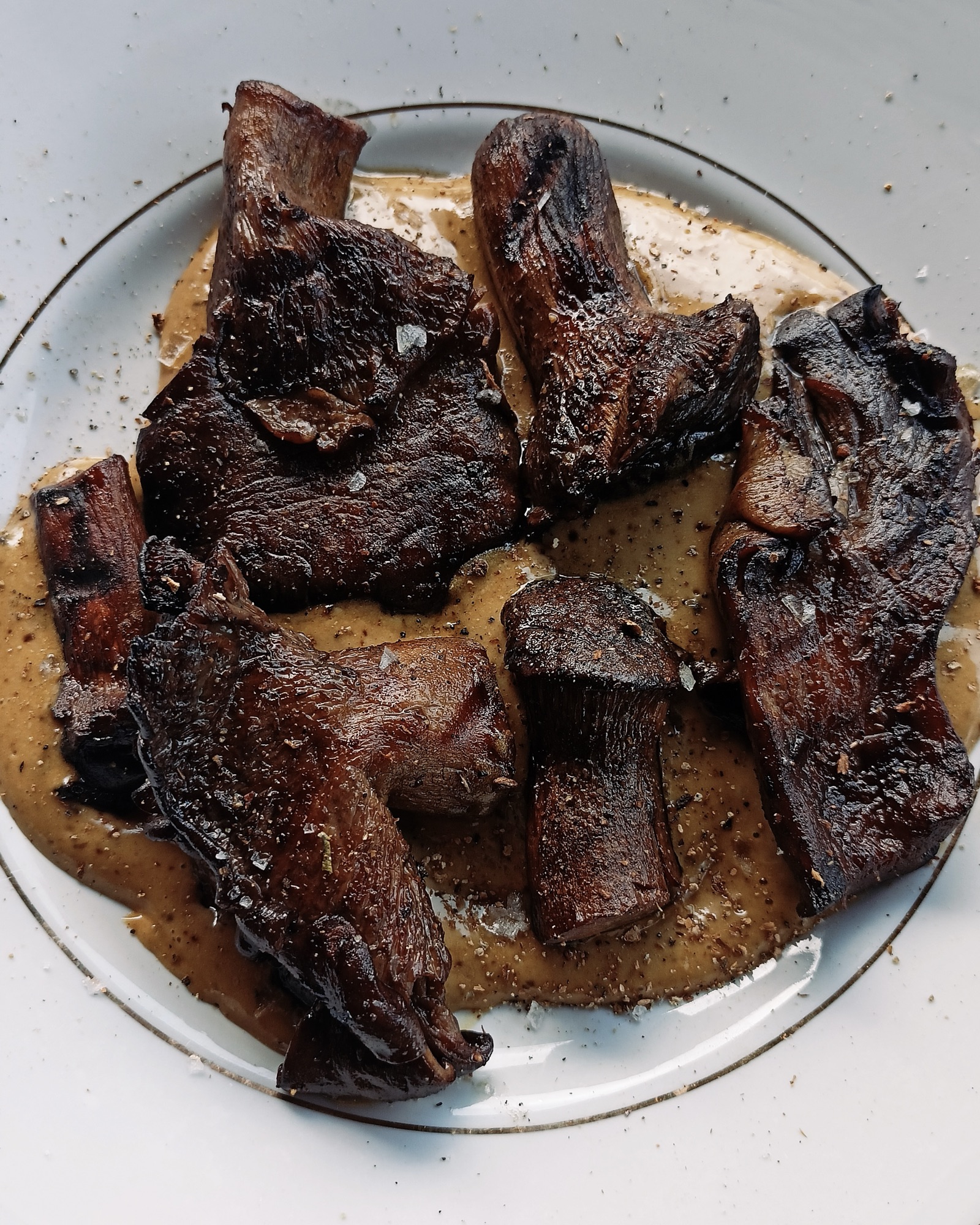 Cipollotti alla brace e roastbeef di picanha con sale di Maldon e salsa verde