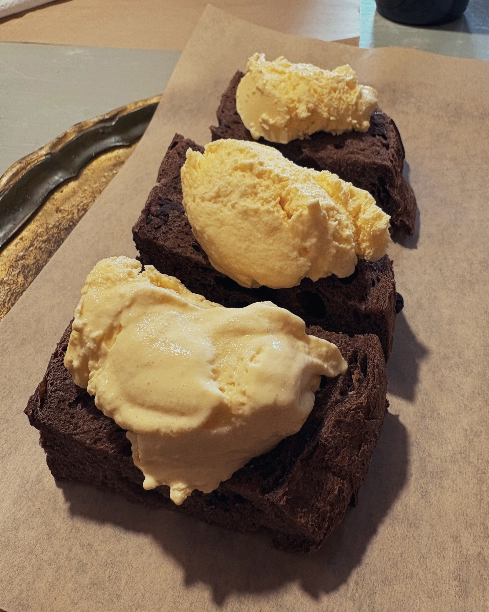 Pane al cioccolato con gelato allo zabaione (5,00 euro)