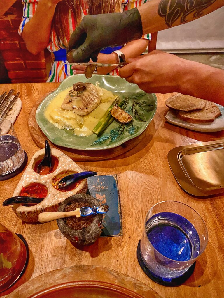 Una cocina de autor, decíamos, y sí lo es; los platillos que se presentan en el menú tienen poco que ver con lo convencional y se destacan por sabores definidos y marcados.