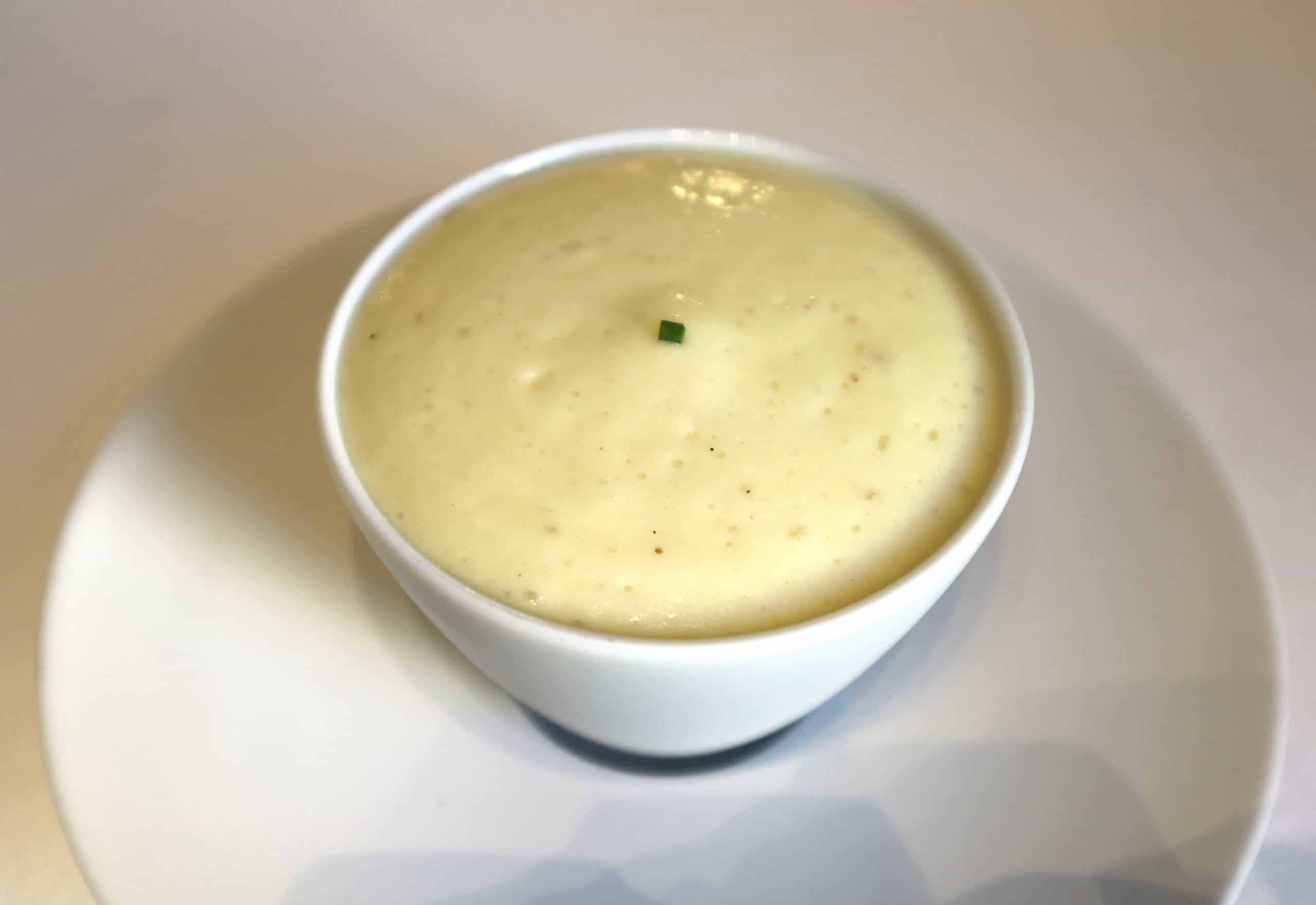 Lumache cotte come una bourguignonne, salsa di spinacino selvatico e cremoso di patata di Mont Saint Michel. L’utilizzo di queste patate permette di non usare il sale poiché lo prendono dalla baia in cui nascono.
