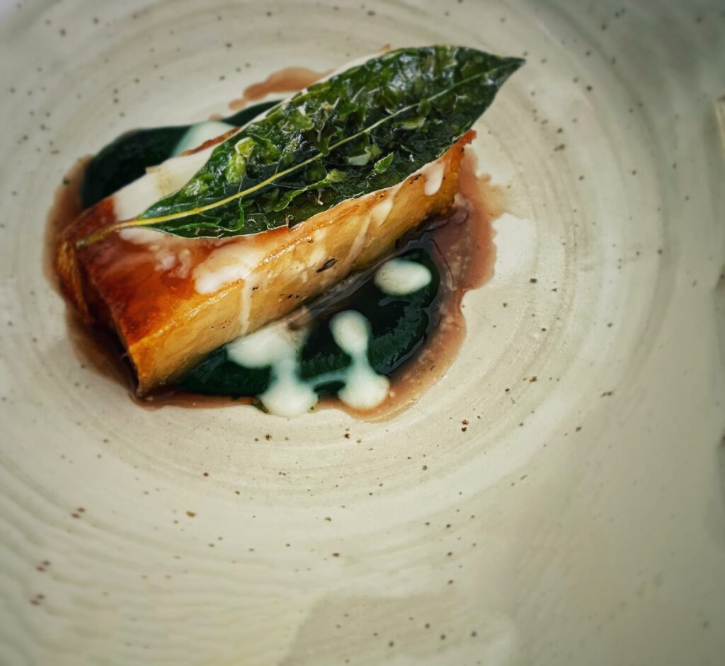 Grande amore e splendida cura sono percebili in ogni preparazione, quanto nella gestione o nei dettagli della sala, addirittura nella ridotta ma centrata carta dei vini – ovviamente tutti naturali – e più in generale in tutta l’aria che si respira al numero 24 della frazione Marenchi.