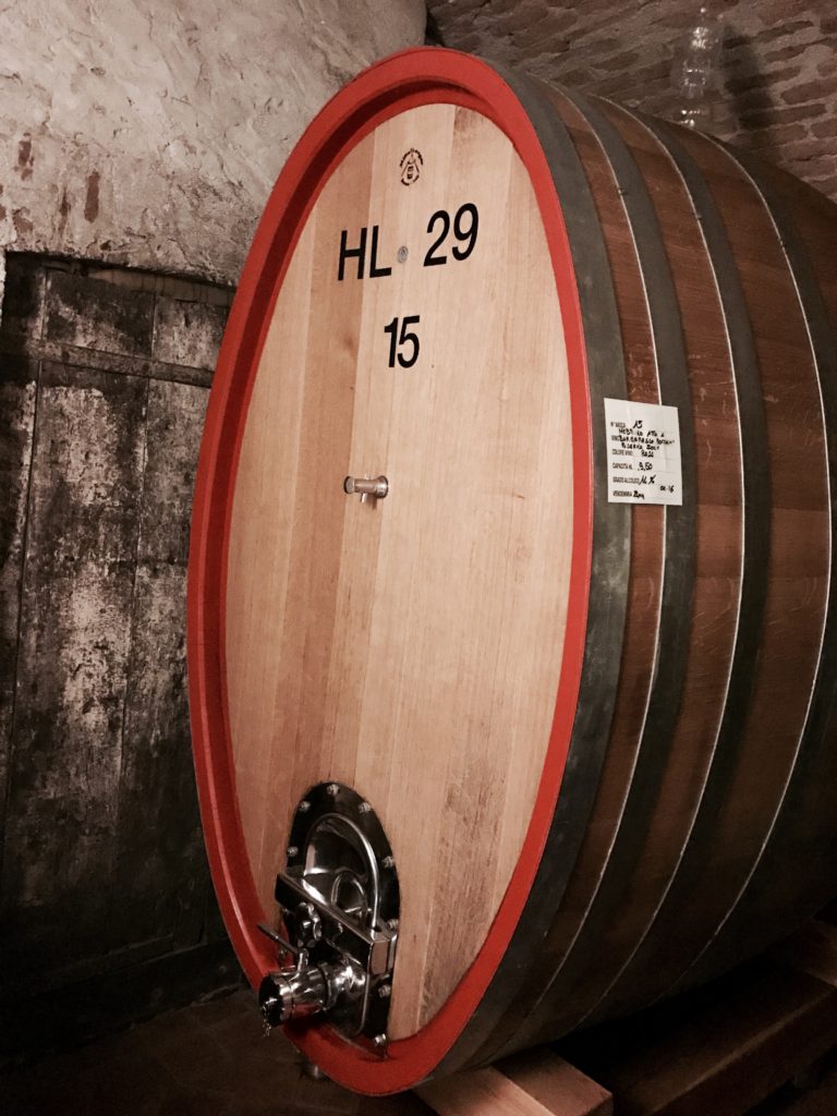 Per l’affinamento utilizza botti di legno della dimensione maggiore che poteva entrare in cantina e di forma ovale, prodotte da Mittelberger e sartorialmente costruite per essere “un vaso vinario che non dà gusto al vino, ma che lo prende dal medesimo”.