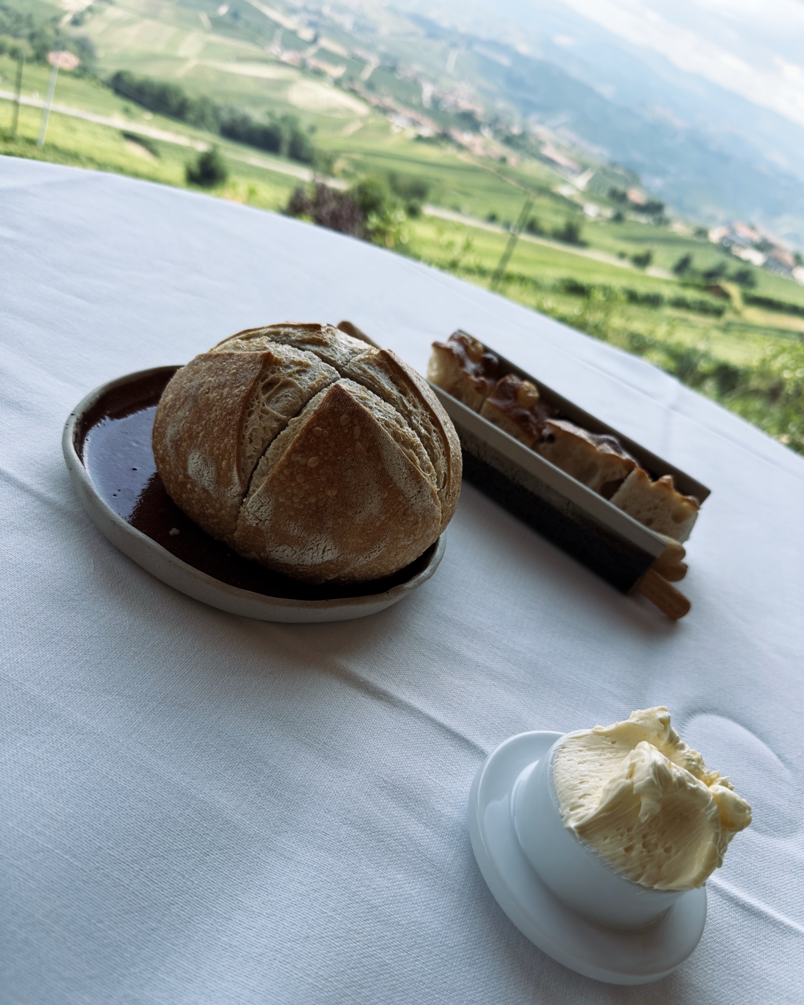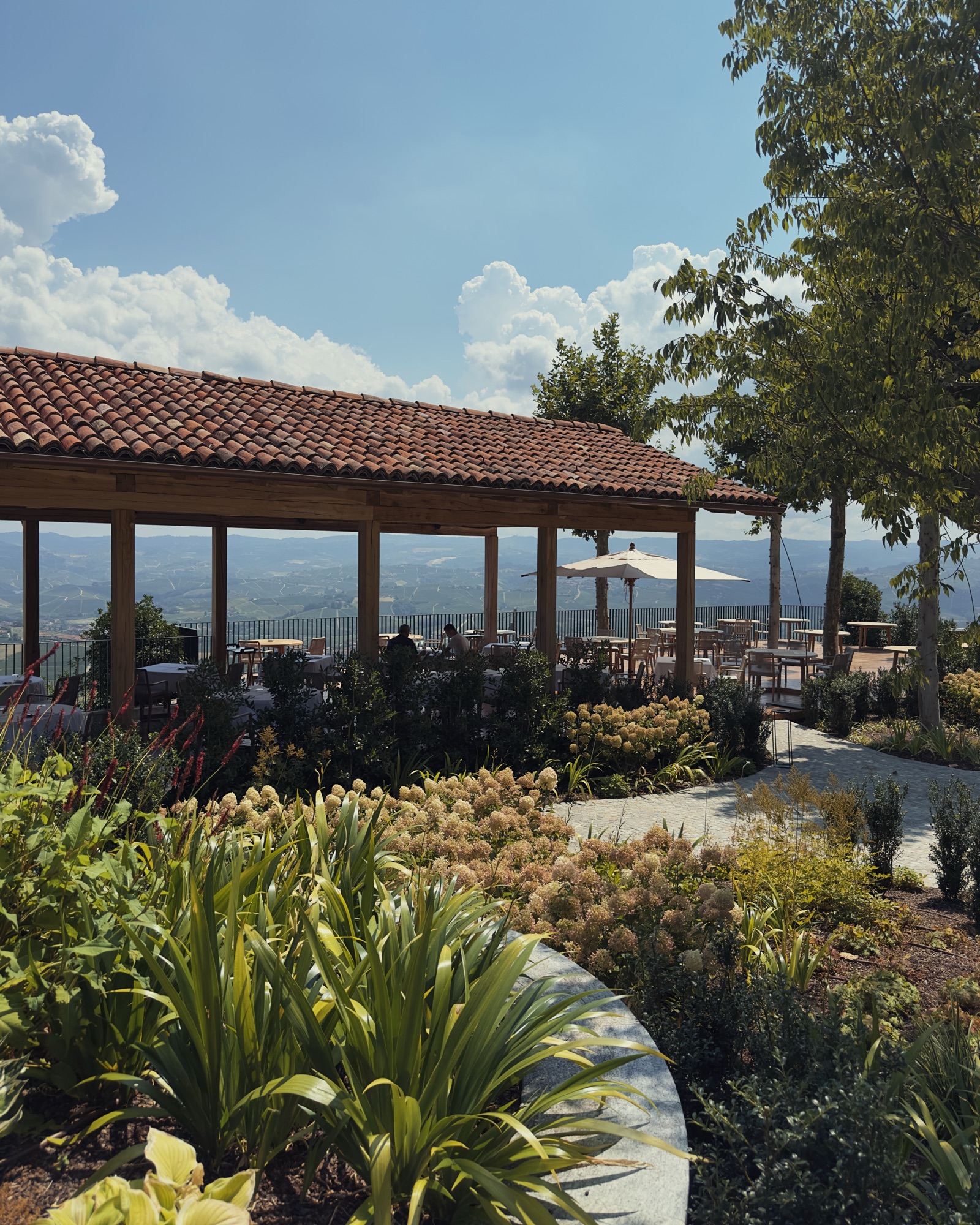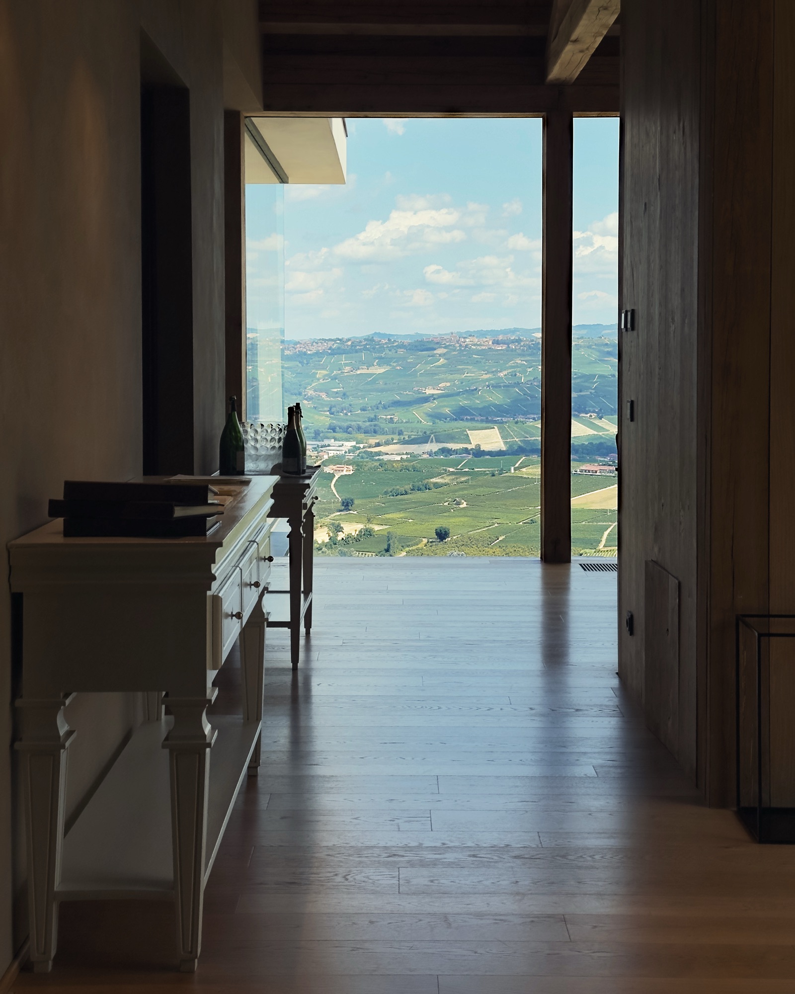 La vista mozzafiato sulla Langhe, che già era uno degli elementi distintivi del vecchio ristorante, risulta adesso valorizzata da una ristrutturazione intelligente, in cui il minimalismo del legno aiuta a raccogliere tutta la luce proveniente dall’esterno, in contrasto con l’illuminazione soffusa. Ora, siccome non sono né un architetto né un designer, la mia descrizione potrebbe non rendere giustizia alla sua bellezza magia. Sia che ci si accomodi nella veranda-giardino che all’interno davanti alle ampie vetrate.