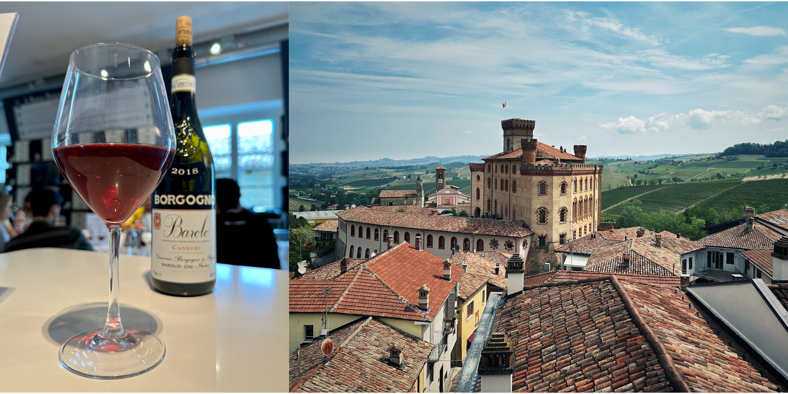 Il Barolo Cannubi 2018 e la vista dalla terrazza della Giacomo Borgogno e Figli