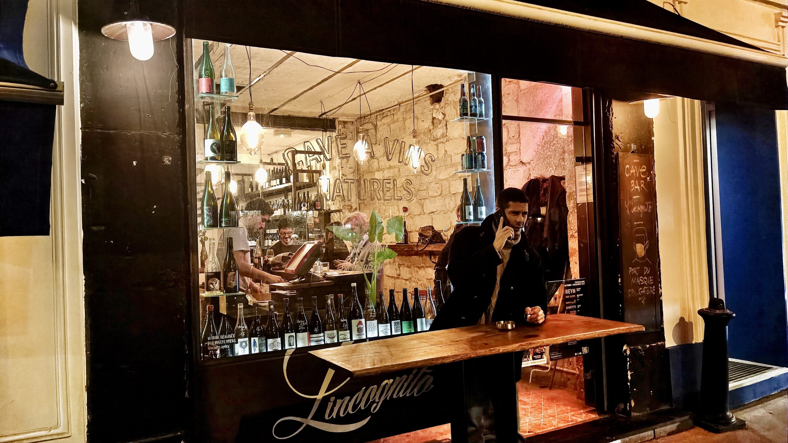 Dopo il bellissimo pomeriggio al museo d’Orsay ci siamo spostati nel XI arrondissement per l’aperitivo e la cena. Dopo esserci messi in lista nel ristorante, il nome te lo svelerò dopo, abbiamo trovato quasi per caso un locale proprio di fronte a quest’ultimo con soli vini naturali: La Cave L’Incognito. E secondo te potevamo non entrare a curiosare?