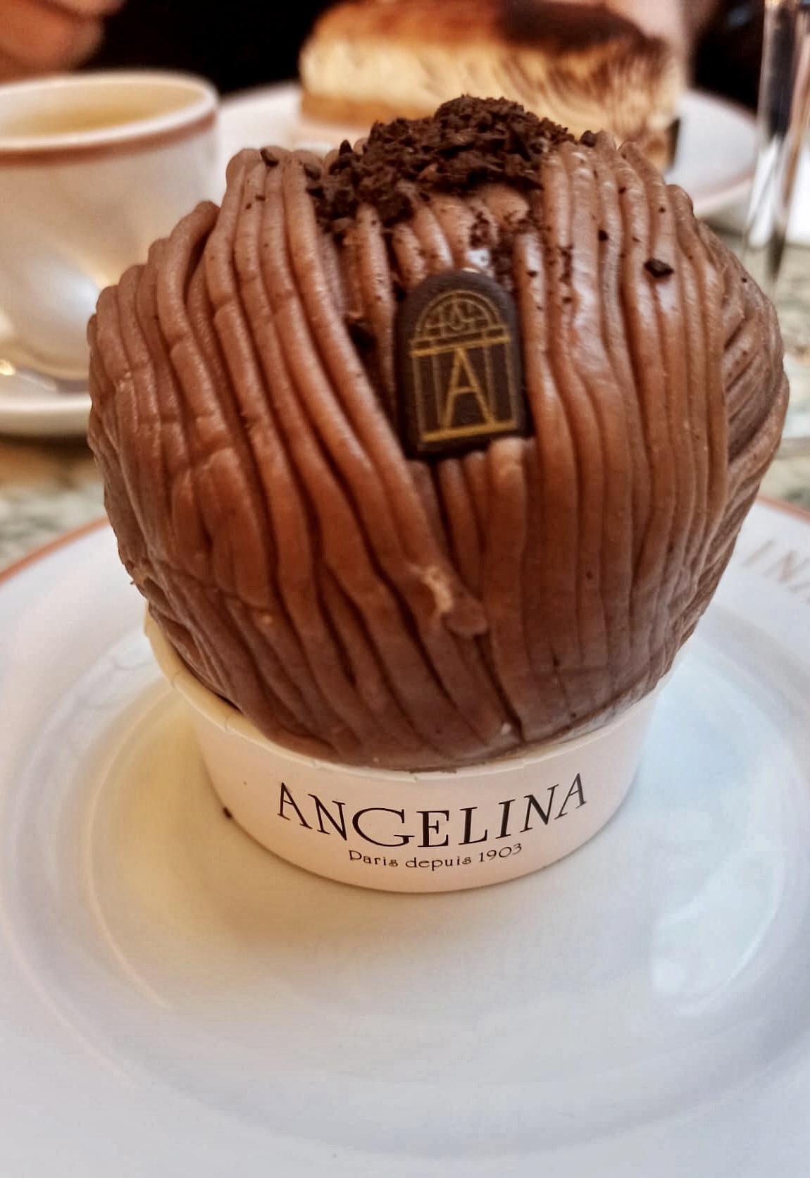Dopo un pranzo così leggero potevamo farci mancare anche il dolce? Certo che no. Quindi, dopo una fila di circa 30 minuti, eccoci seduti in uno dei “salon de thé” più antichi, fu fondato nel 1903, e famosi della città: Angelina. Qui abbiamo assaggiato il suo famosissimo Mont Blanc, un dolce a base di meringa, panna montata e pasta di castagne. Devo dire che, nonostante io non sia un grande amante della pasticceria, mi è piaciuto molto.