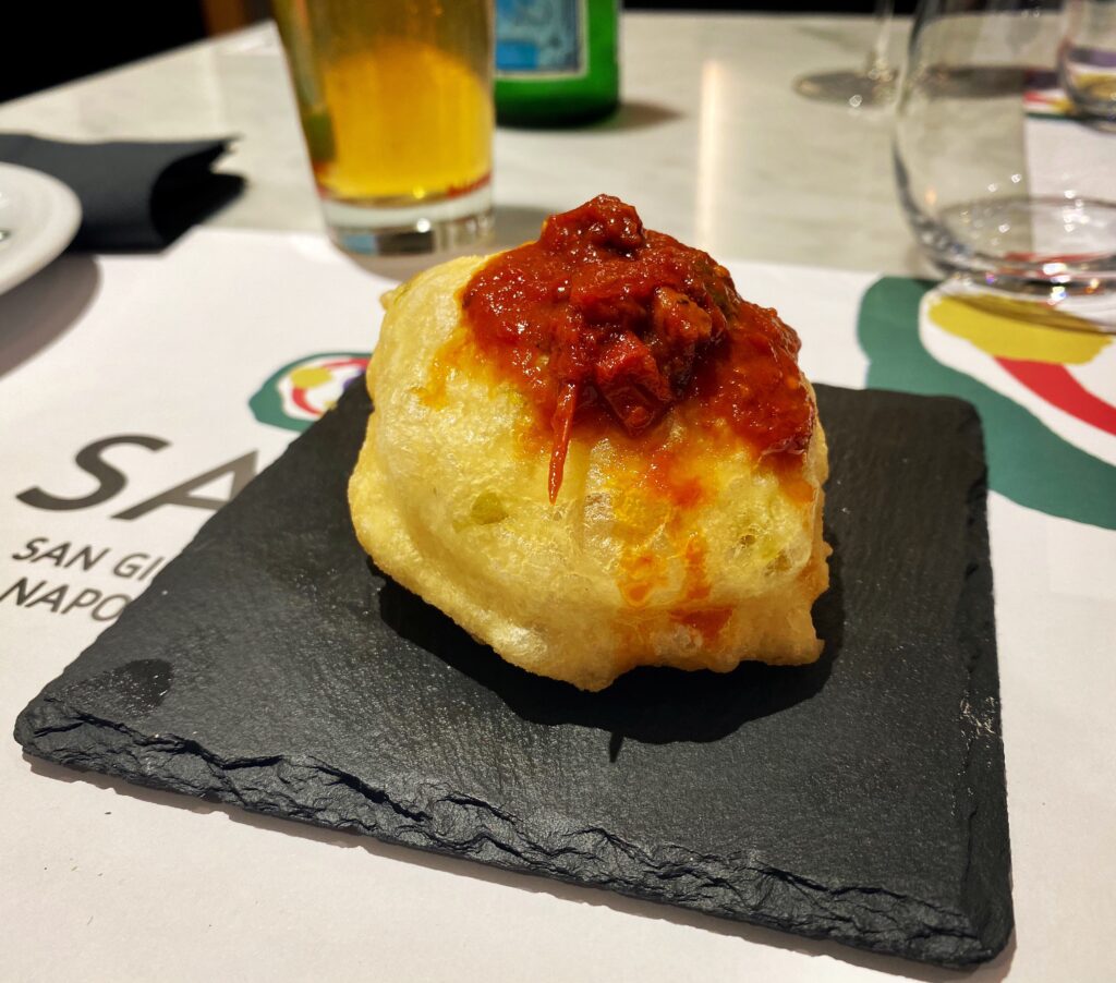E infatti la Margherita consumata su una vicina scalinata di Forcella rimane una delle fotografie più segnanti del soggiorno a Napoli: fumante, gustosa, leggera e popolare.