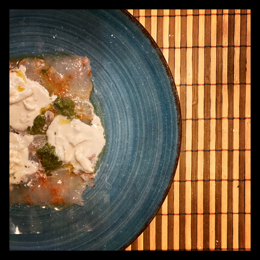 • Carpaccio di gamberoni di Santa Margherita, burrata e pesto leggero;