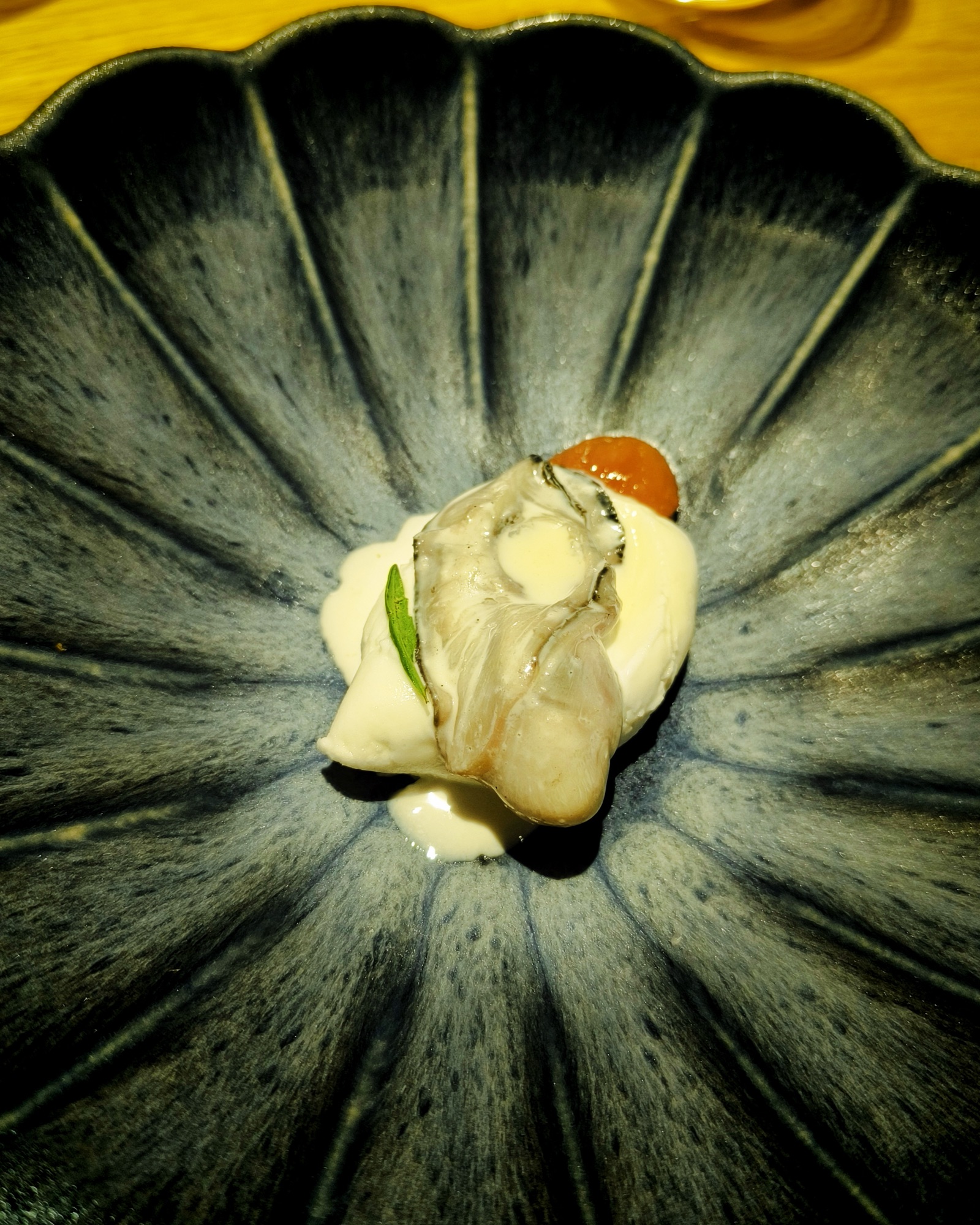 Ostrica tiepida, vaniglia, arance amare, gelato al fior di latte di pecora