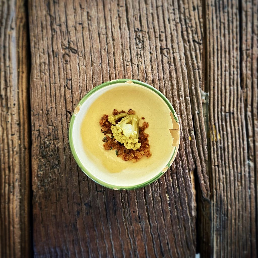 Domenica ho adorato l’equilibrio della coratella, il controllo del selvatico della carne di pecora, l’avversione al manierismo contemporaneo del broccolo e l’accostamento dell’affumicato ai finocchi nel risotto. Pula invece ha affermato di poter vivere di tumin (oramai un signature che sintetizza l’essenza del Reis attraverso l’unione delle patate di montagna autoprodotte, il formaggio come simbolo della sinergia creata con i produttori locali e il tocco personale di Juri, cioè la salsa alioli sifonata) e panne cotte.