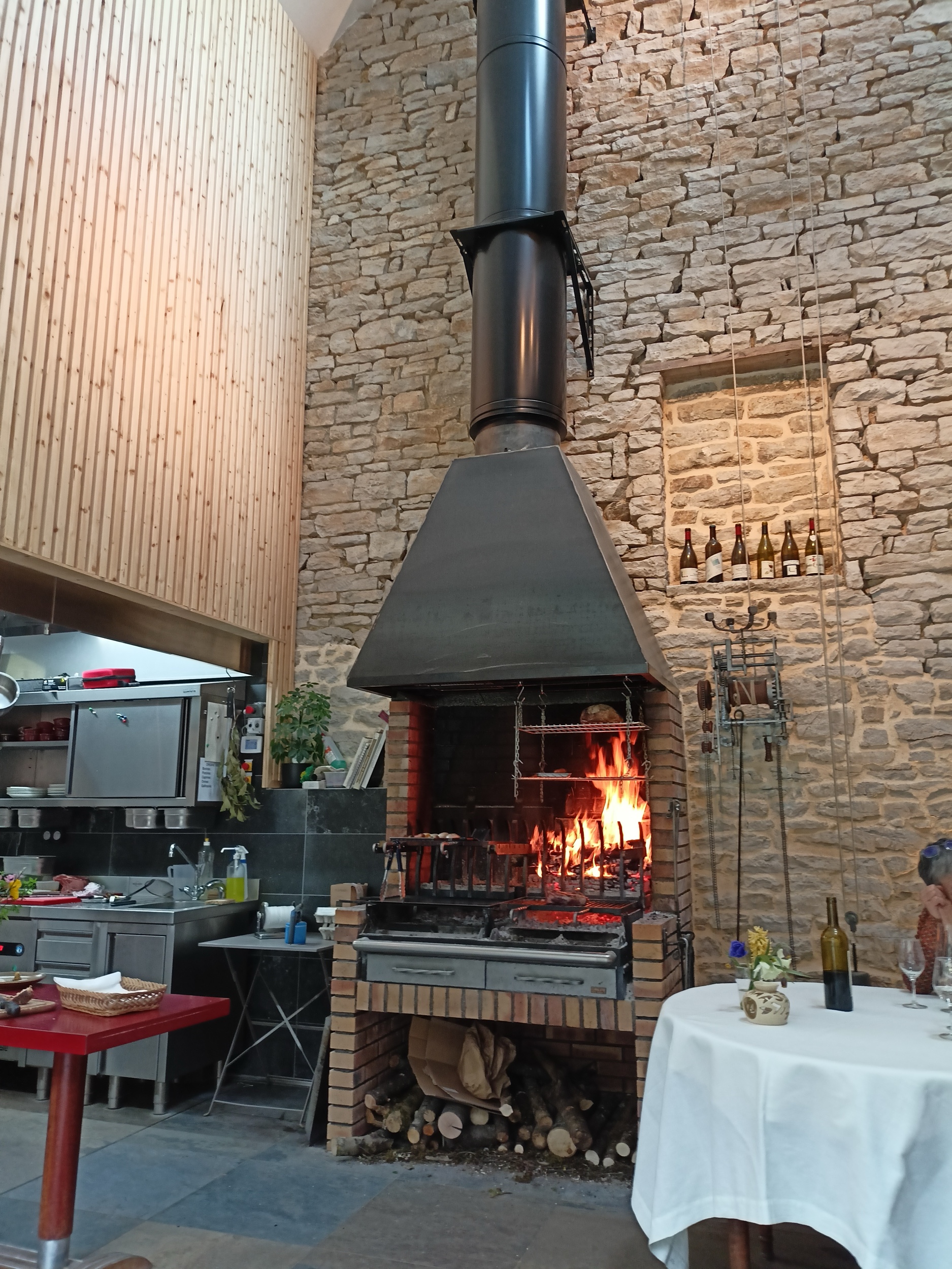 Il protagonista di questo unico spazio condiviso tra la cucina a vista e i 4 tavoli tondi è il camino dall’altissima canna fumaria sulla cui griglia vengono. tra l’altro. cucinate molte delle portate che compongono i 3 menù degustazione proposti (da 3/4/6 portate a 49.00/76,00/94,00 euro).