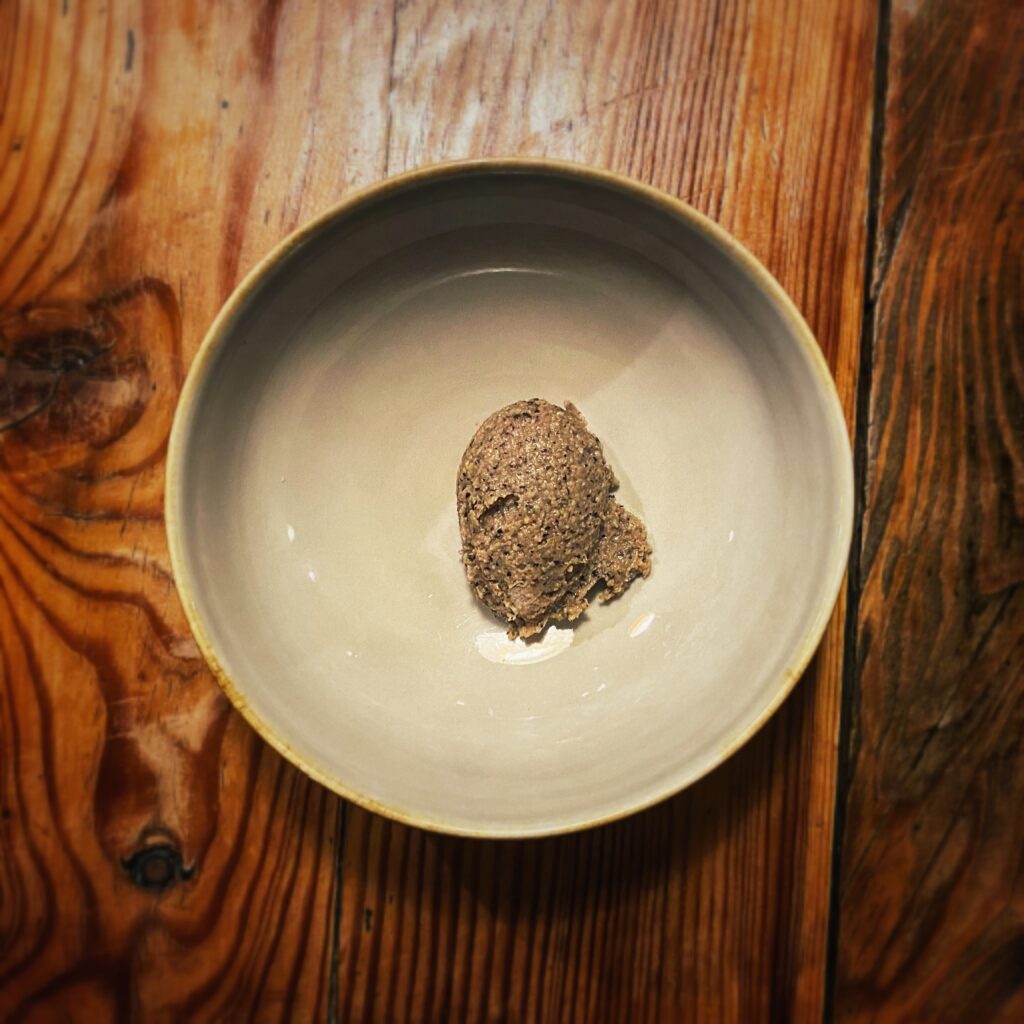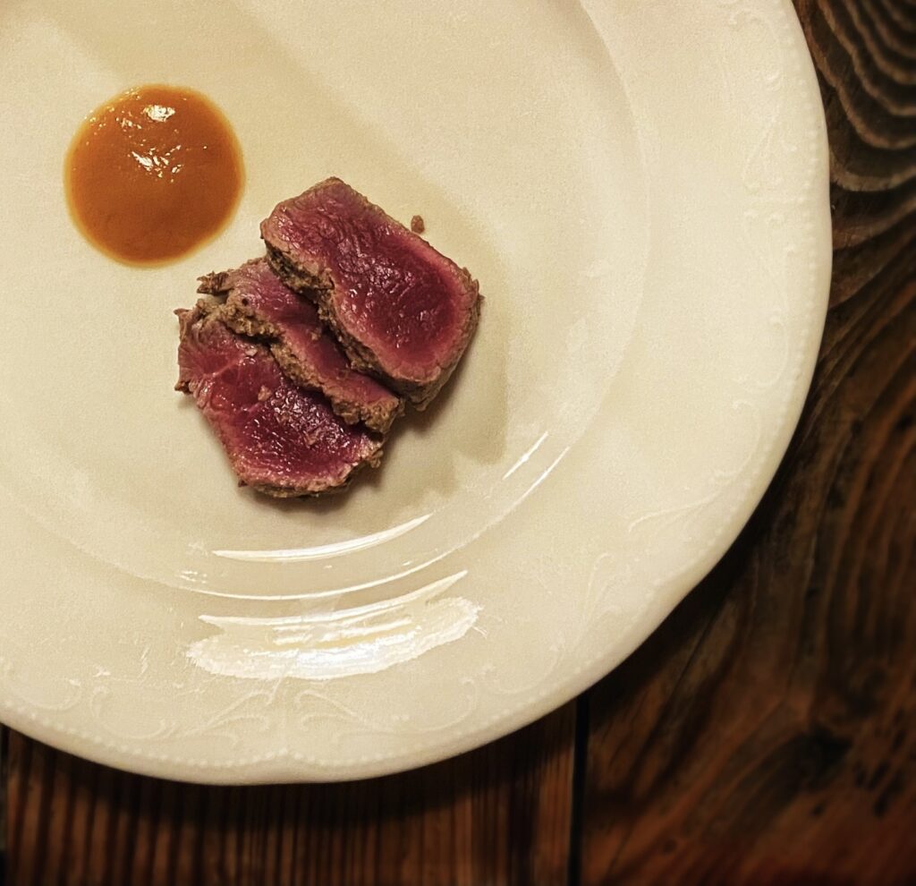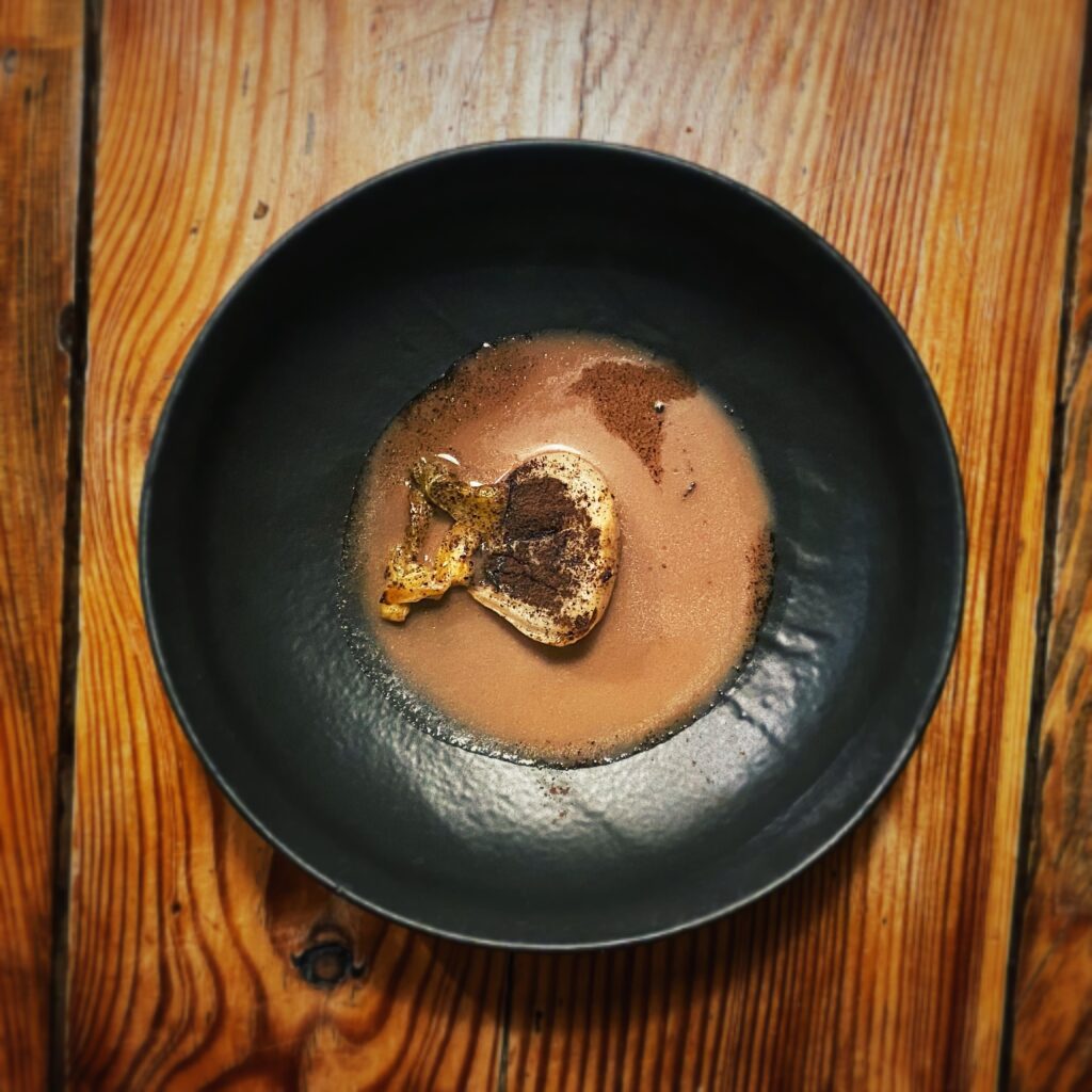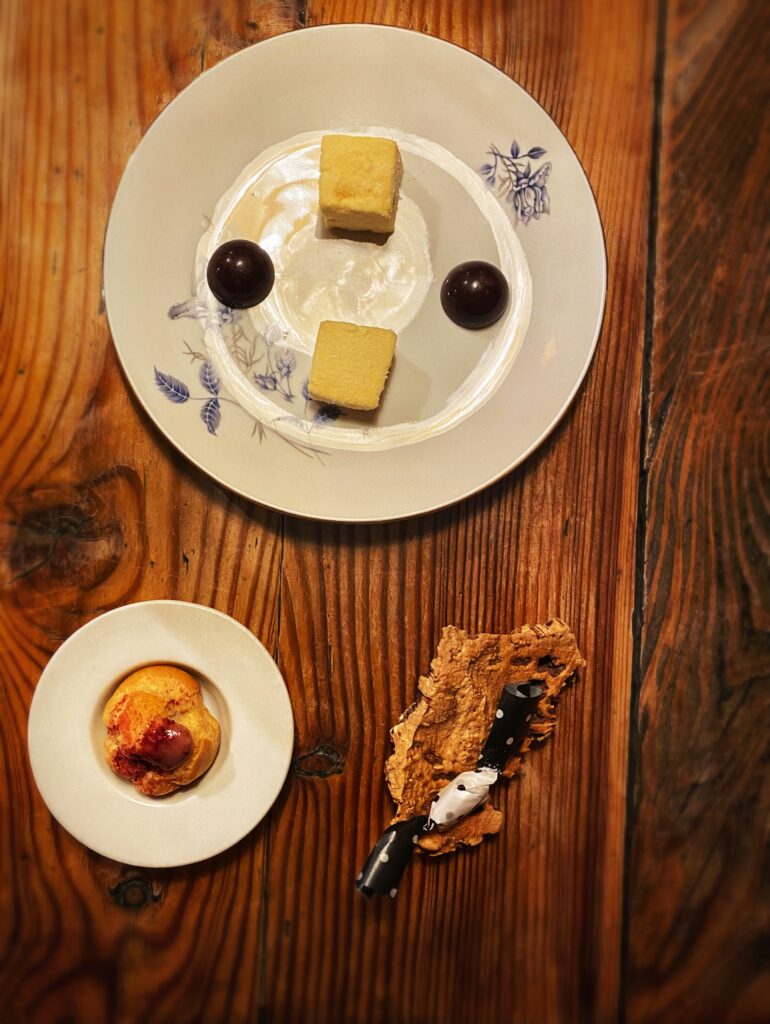 Il lavoro dietro a ogni sfumatura dell’offerta gastronomica appare davvero smisurato, non solo in cucina. Dalla scelta di eliminare la carta delle vivande alla non enciclopedica ma centrata selezione di vini (ci si diverte a partire dai 22,00 euro del rifermentato “Aire en el Patio la Tarancona” 2020 di Vinos Patio o dai 23,00 del “Roo” 2020 di Rocco di Carpeneto), dalla candela edibile servita con il pane alla proposta di caffè e digestivi, emerge in continuazione una direzione “ostinata e contraria” nel solco di un pensiero sempre coerente e ispirato. Entusiasmante.