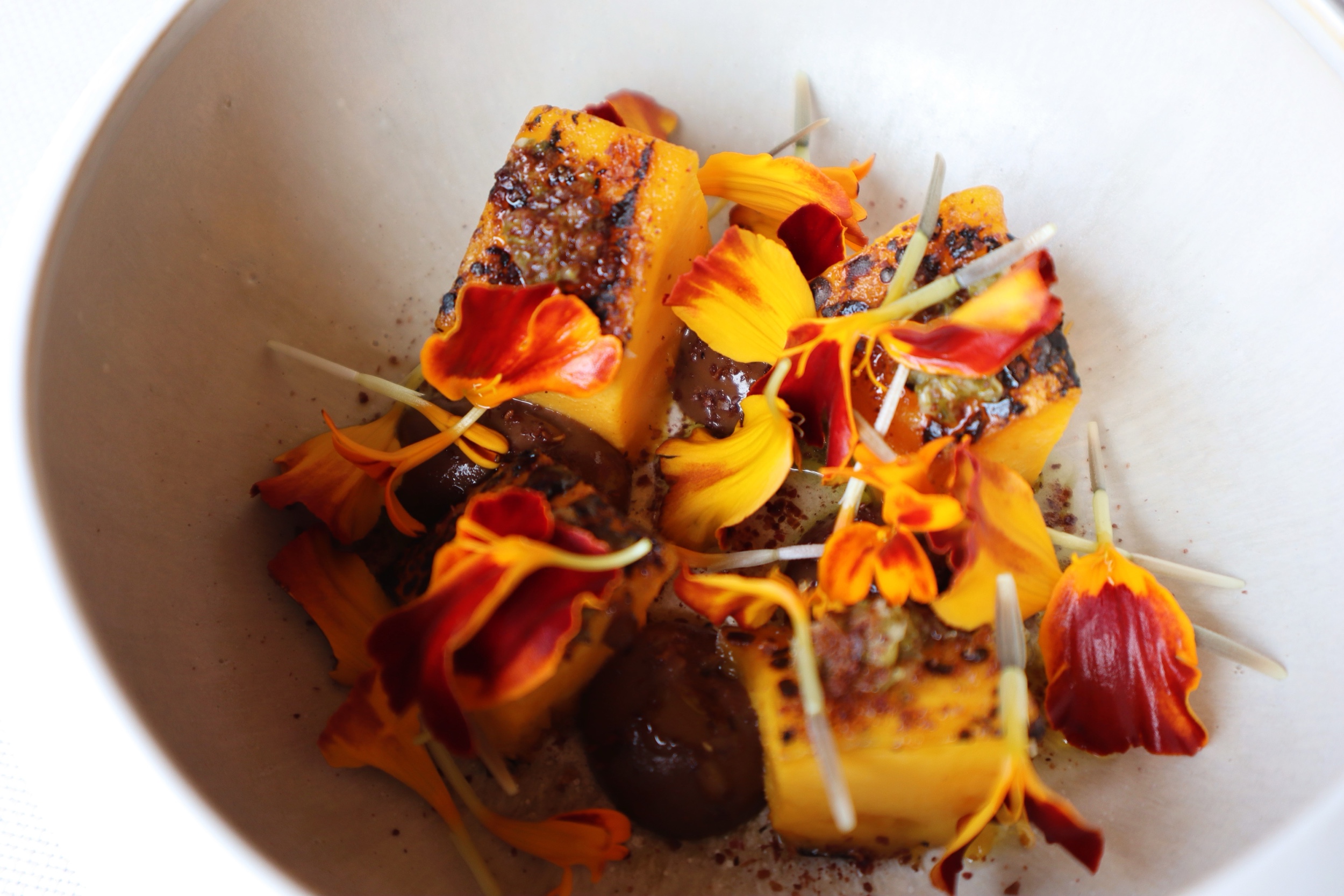 Pomodoro cotto in forno, passion fruit, yuzukosho e malto d’orzo