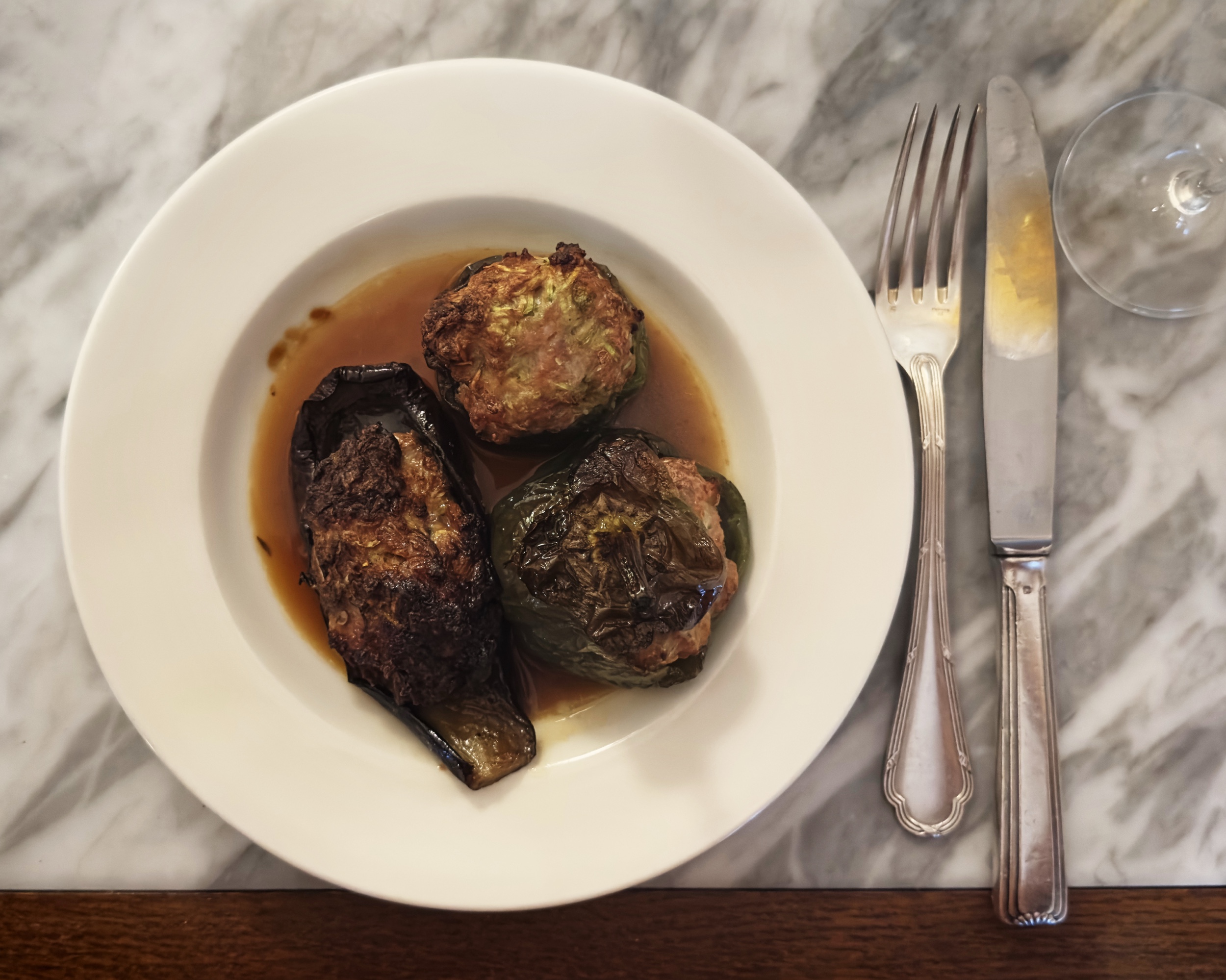 La mano è semplice ma precisa, capace di esaltare la materia prima senza sovrastrutture. Notevoli la terrina di coniglio, la fregola cotta alla perfezione e ravvivata dall’abbinamento fresco di porri e limone, e i tipici peperoni ripieni di carne, qui intelligentemente serviti “in umido”, un piatto che, con intensità e persistenza, mi ha restituito il piacere di una tradizione che in Liguria avevo ormai dato per scontata, complice anche la troppa mediocrità incontrata recentemente.