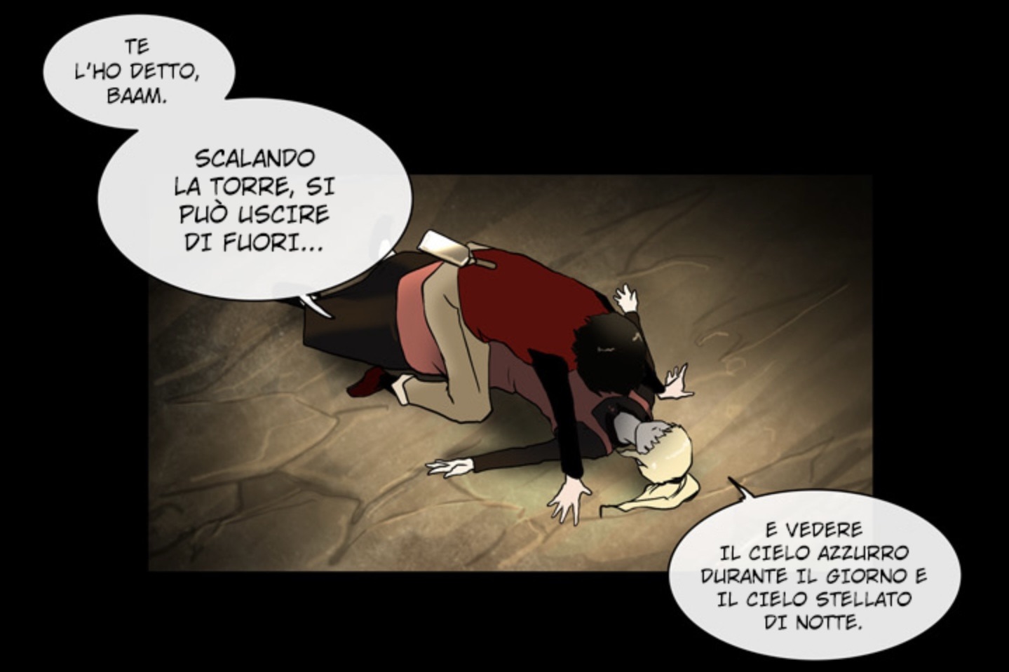 Tower of GodIl manhwa a colori di Lee Jong-hui racconta l’inseguimento del protagonista, Baam Venticinquesimo, della sua unica amica, Rachel, ossessionata dalla scalata di una magica e misteriosa torre che la dovrebbe portare a vedere le stelle dopo una vita passata nell’oscurità.