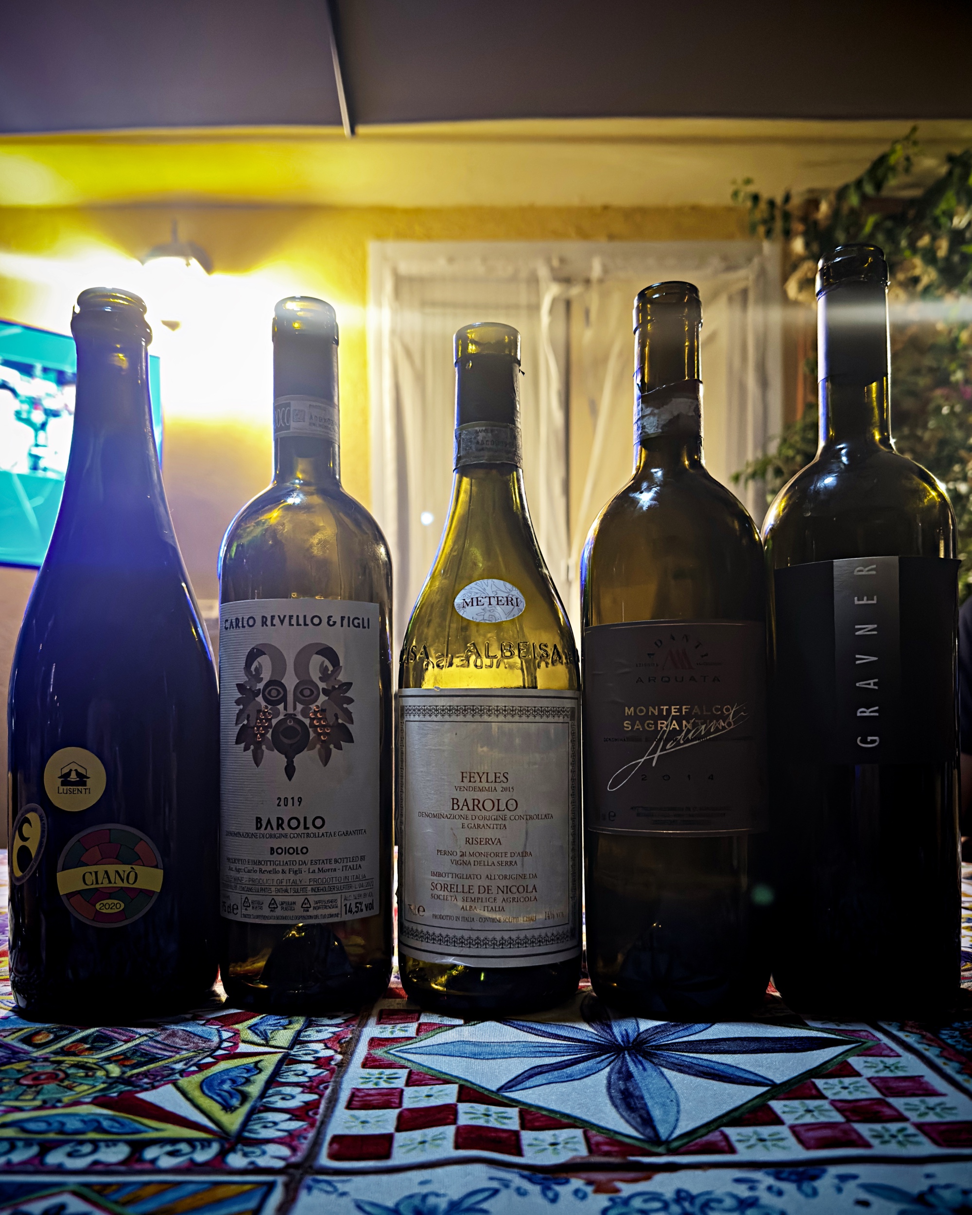 Barolo Riserva 2015 di Sorelle De Nicola / Feyles – Assaggiato per la prima volta con alcuni amici poche sere fa, assieme ai vini della fotografia qui sotto. Finisce per prendere schiaffi un po’ da tutti: dal Rosso 2000 di Gravner, ovviamente, ma anche dall’“umile” Boiolo 2019 di Carlo Revello, ritenuto dai presenti più scuro, graffiante, meno frutto, più definito e… Barolo. A prescindere dalla corrente in cui lo si voglia infilare e nonostante un’idea di verità gustativa percepibile .