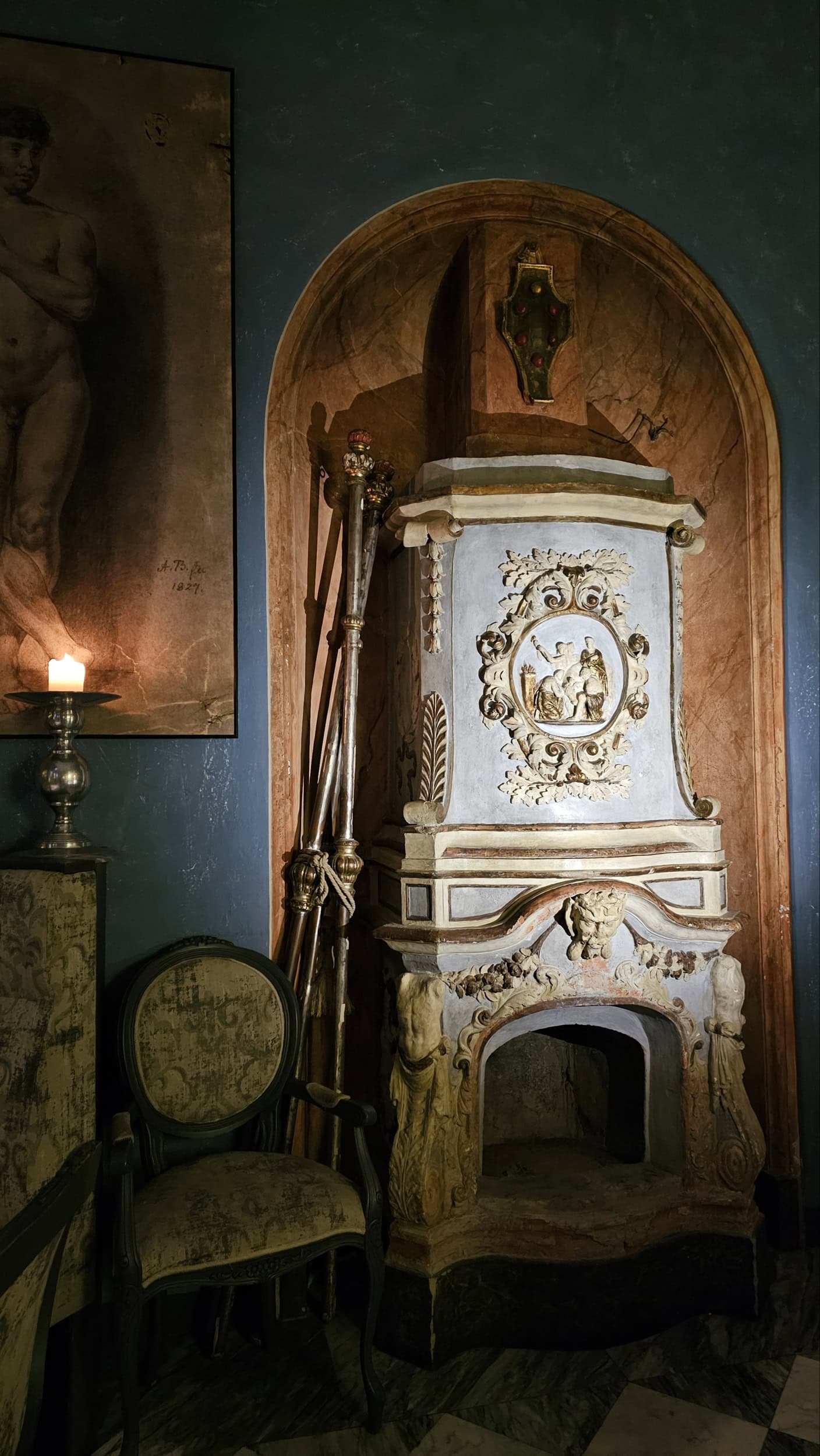 Ai piani inferiori un vero e proprio tesoro storico: diverse sale ricavate dagli spazi della servitù nelle quali sono ancora visibili il piano lavanderia, il pozzo, il focolare, una bellissima stufa in terracotta policroma del 1700 e l’antica cantina dove veniva conservato il vino prodotto dai proprietari della dimora.
