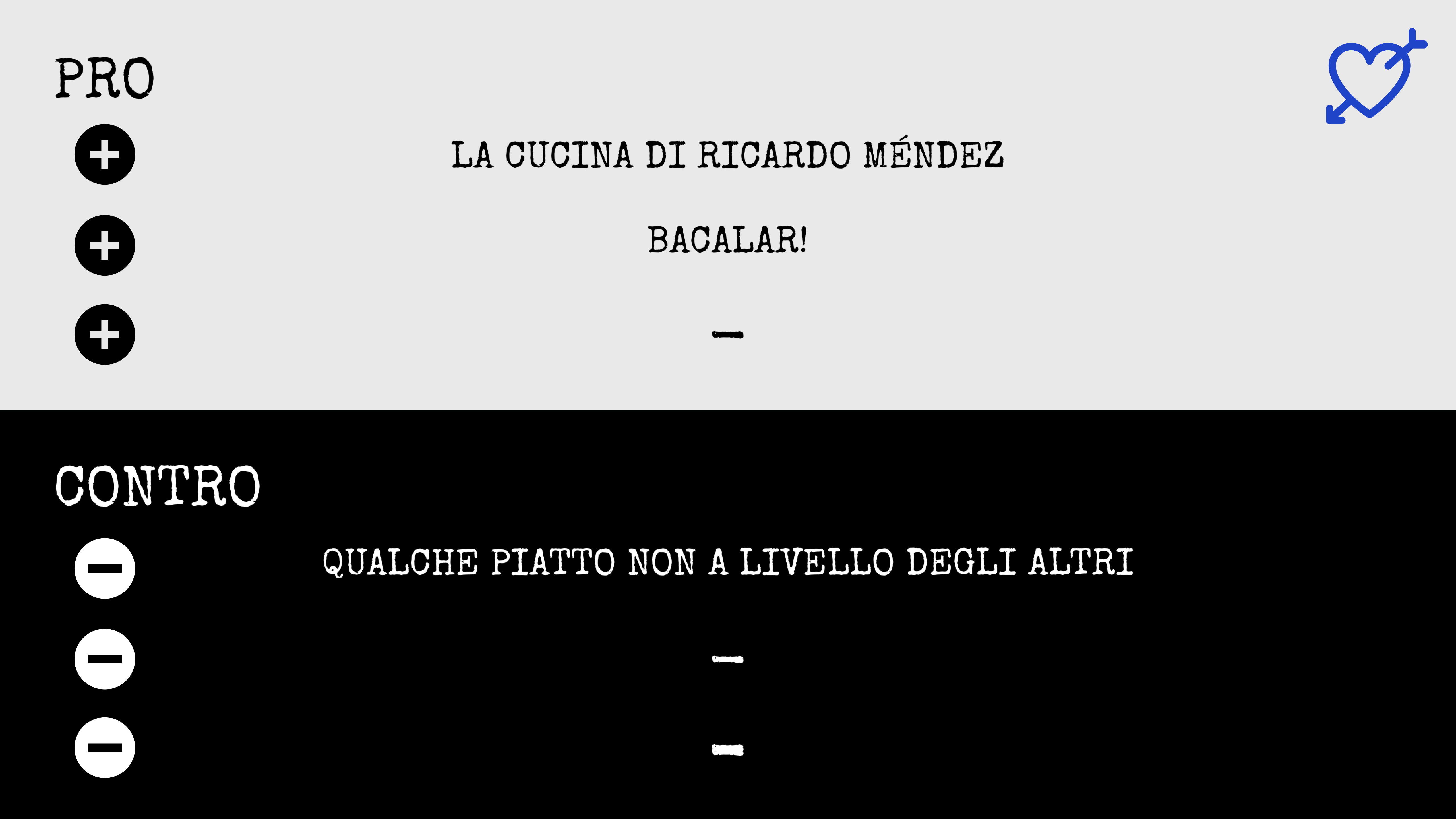 Molto rinfrescanti, quasi taglienti eppure bilanciati, gli antipasti; il sashimi con la profondità del suo intingolo spiccava su tutti. Anche la pasta in sé non mi è dispiaciuta, ma sul condimento c’è ancora bisogno di lavorare siccome tra zucca, noci e formaggio il risultato appariva piuttosto piatto. Entusiasmante il gioco di sapori tra il mole e la purea di cavolfiore, goloso senza essere stucchevole il dolce.