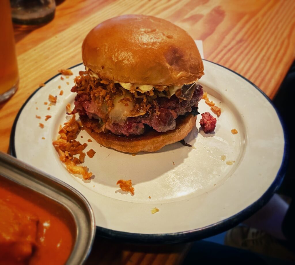 Riconosciuto da tutti i londinesi come uno dei migliori della capitale, il Bacon Butter Burger di Burger & Beyond ha deliziosamente distrutto ogni mia certezza in materia di hamburger, sbattendomi in faccia la realtà di quanto poco in Italia sia radicata una vera cultura dell’iconico panino, fino a prova contraria nato ad Amburgo. Come ha fatto? Primo con la bontà della carne. Tutte le patty di B&B sono realizzate con la carne di Swaledale Foods, una “macelleria” che seleziona bovini da razze autoctone allevati in fattorie locali nelle valli dello Yorkshire. Il bestiame viene allevato in un ambiente totalmente ruspante, nutrendosi di erba, fieno e insilati, ottenendo una carne succulenta, marmorizzata e ricca di sapore. Le razze autoctone impiegano più tempo a maturare rispetto alle razze bovine commerciali poiché non crescono così rapidamente, il che è ciò che conferisce alla carne il suo incredibile sapore. Tutta la nostra carne viene frollata per un periodo compreso tra 28 e 45 giorni. Nei nostri frigoriferi utilizziamo anche pareti di sale dell’Himalaya per creare l’ambiente perfetto per il processo di invecchiamento a secco. Concentra il sapore della carne e purifica l’aria nella stanza, consentendo una stagionatura prolungata senza deterioramento. Ciò si traduce in un prodotto unico, secco, dolce e saporito. Perciò gli altri “pro” puoi anche scoprirli da solo. Ah, oltre che a Camden Town, puoi trovare i ragazzi di Burger & Beyond anche a Shoreditch, Soho…