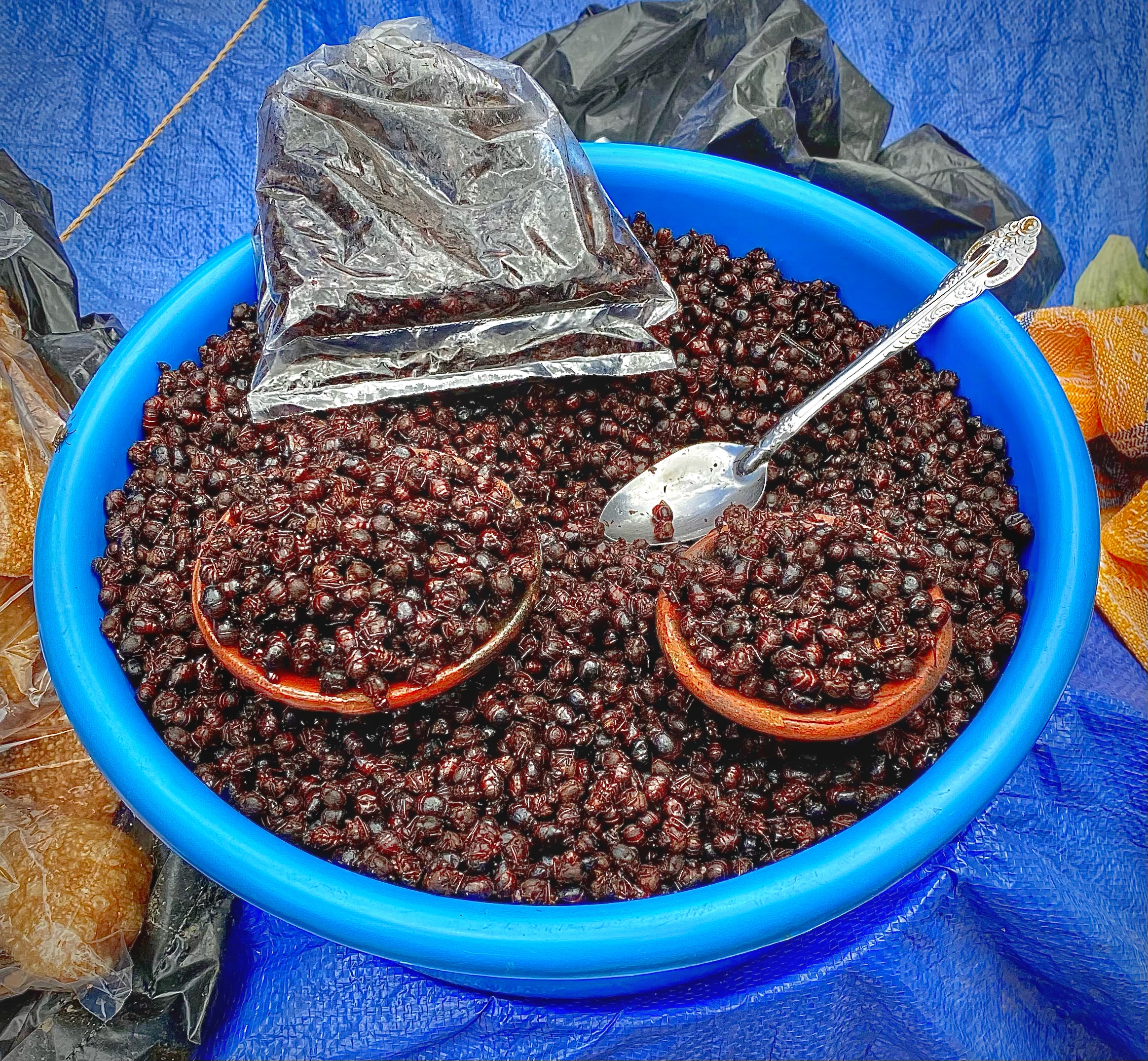 Occhio, questo non vuol dire che i messicani si abbuffino di insetti, caso mai il contrario. Ma una salsa di formiche Chicatana dentro di un taco, un pugnetto di Chapulines (cavallette fritte e speziate) sopra un guacamole o un tocco di Sal de Gusano (sale, peperoncino e verme del maguey lasciato essiccare e tritato) su di uno spicchio d’arancia con il mezcal, apportano, oltre a una buona dose di proteina ecosostenibile, un sapore che può sbalordire e renderci velocemente dipendenti.