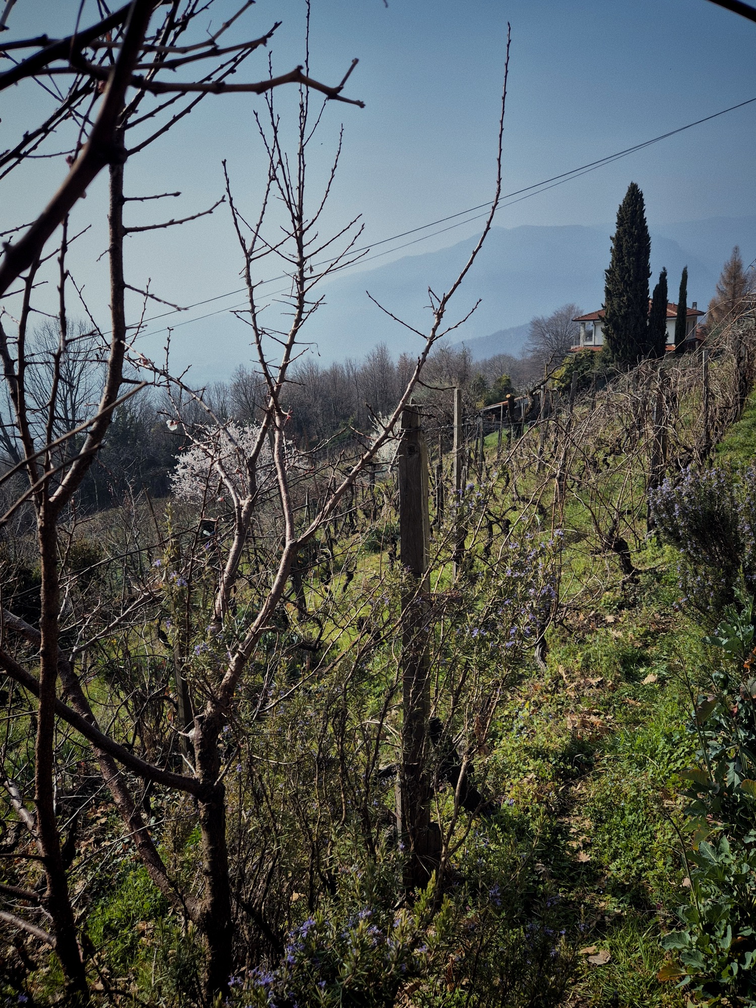 La vigna da cui stappiamo i rossi Vecchie Vigne 2023 e 2024 è un giardino popolato da varietà valsusine tra cui David, Balou, Barberassa, Carcairun (Gamay), Neretta Cuneese, Grisa Nera, Becuet, Chatus, Teinturier e anche qualche ceppo di uve bianche, aromatiche e non.