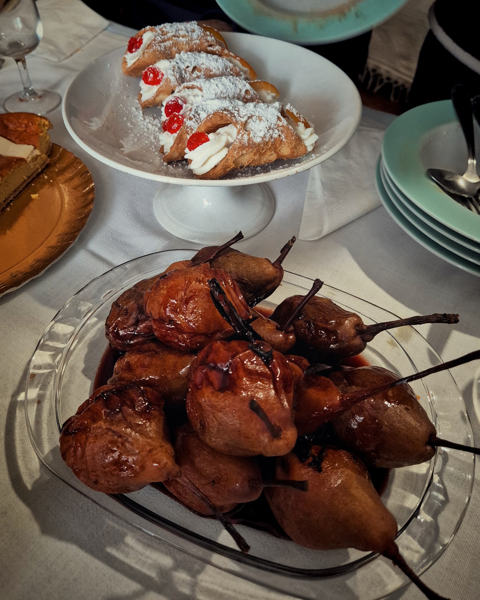 A casa Antonella ci aspetta per pranzo: busiate, barbette, formaggi, cannoli siciliani, pere Martine… una goduria insomma!