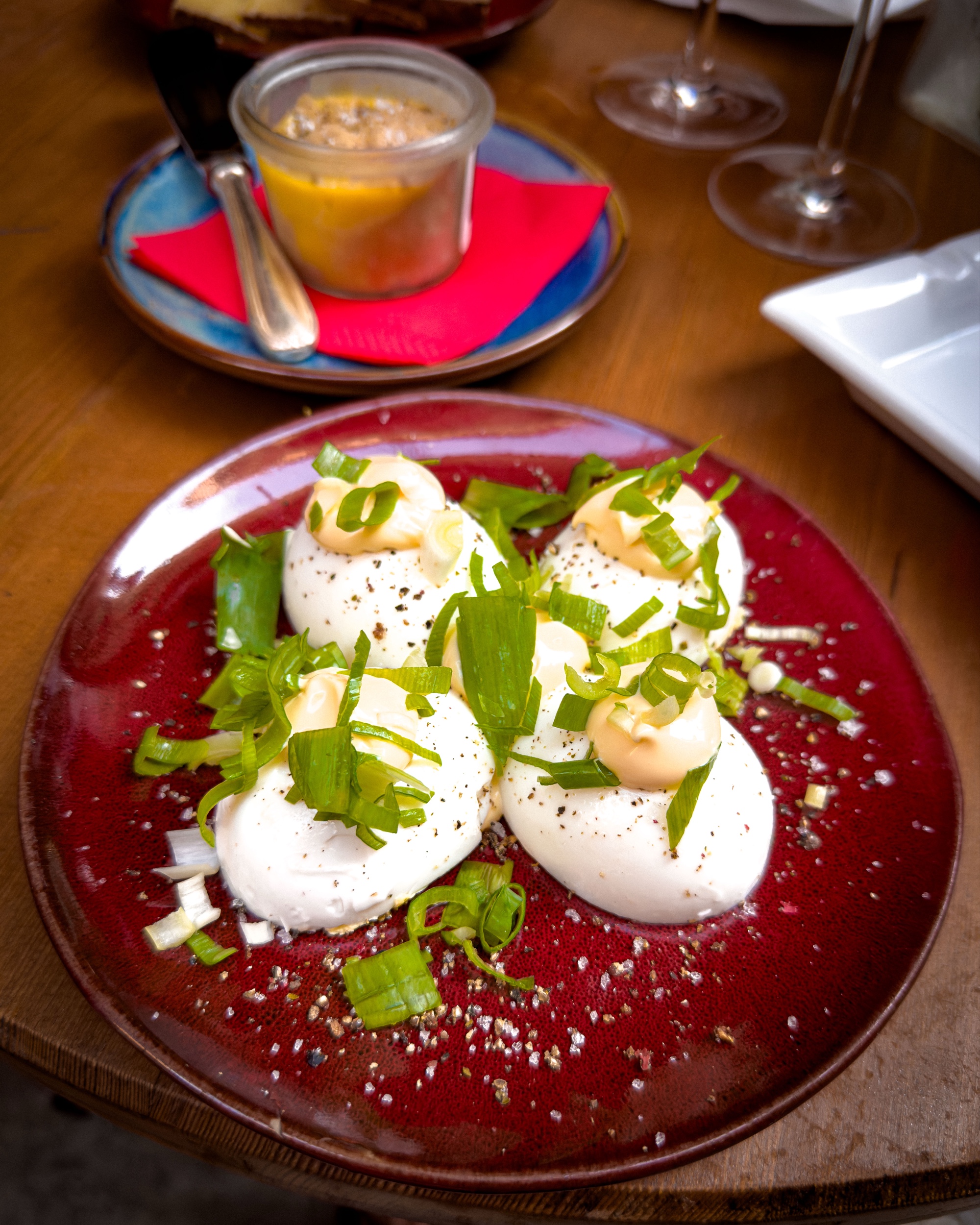 Ecco, non lo rifarei. Non perché ci fosse qualche problema evidente (né, d’altra parte, alcunché di memorabile, eh), ma bisogna proprio essere dei pirla, considerando la bontà del resto. Anche le uova, onnipresenti nei bar-á-vin di Nizza, mi sono parse trascurabili.
