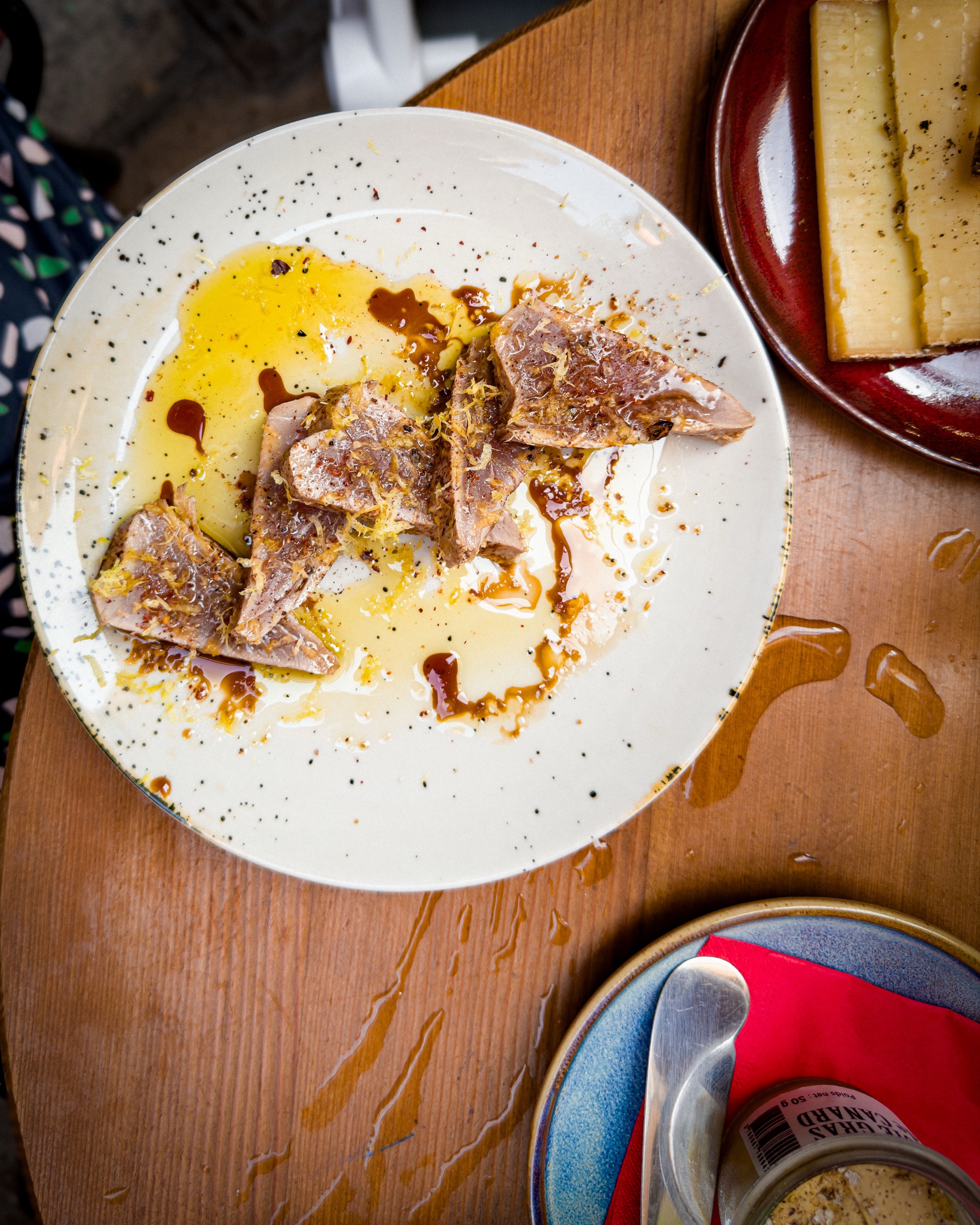 In cucina, invece, è presente un’ampia scelta di piccoli piatti caldi e freddi preparati con ingredienti selezionati con gusto e criterio, perfetti per un aperitivo, ma anche per restare a cena. Dalle escargots de Bourgogne al foie gras du Sud-Ovest, dai cannolicchi (couteaux) alla griglia al tataki di tonno rosso, dal Comté al vitello tonnato… Sì, alla fine ero talmente curioso che ho provato pure quello.