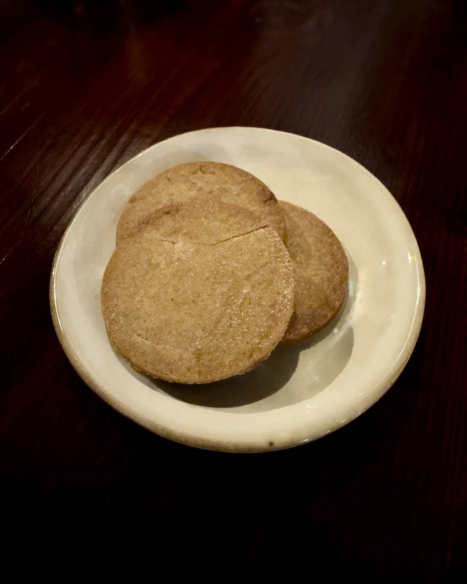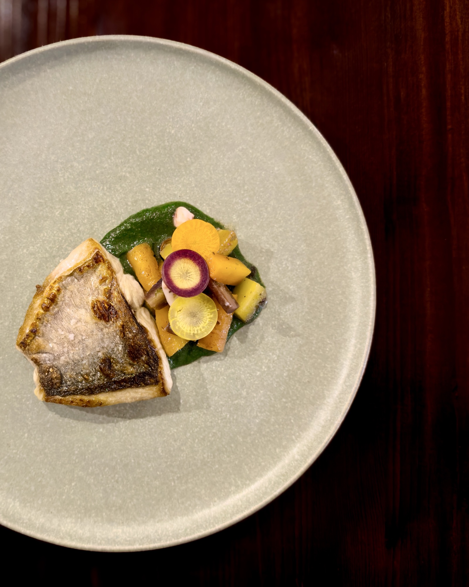 Passando ai piatti, dal crudo di pesce ai raviolini di “baccalà in umido” – dove il ricordo del piatto di casa si fa tecnica e divertimento – fino al pescato, abbiamo trovato grande pulizia d’esecuzione e gusti estremamente riconoscibili. Anche il dessert conferma una mano che preferisce il fioretto alla sciabola, che gioca con intensità mai urlate. Un particolare che però, considerando la continua rotazione del menù, potrebbe essere solo il racconto di questa singola serata e non un tratto strutturale.
