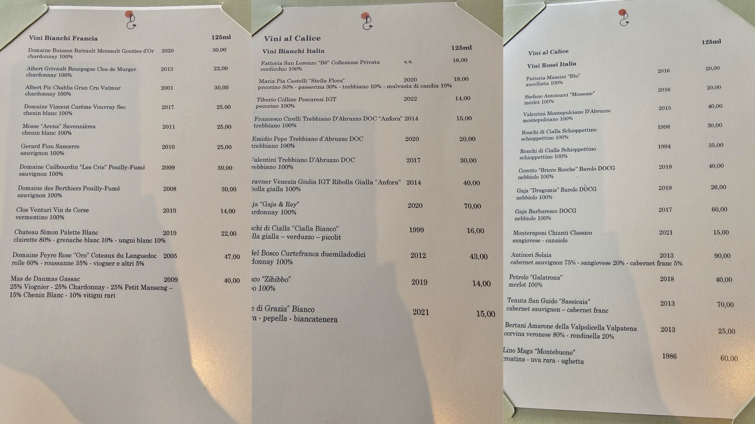 sommelier Nicholas Bratti, forte di una carta dei vini di circa 1300 etichette in cui sicuramente spicca una proposta al calice, dai ricarichi commisurati alla situazione, tra le più variegate e importanti che ho incontrato dall’inizio del mio pellegrinaggio enogastronomico. Per quanto riguarda gli abbinamenti, al momento, il miglior pairing dell’anno!