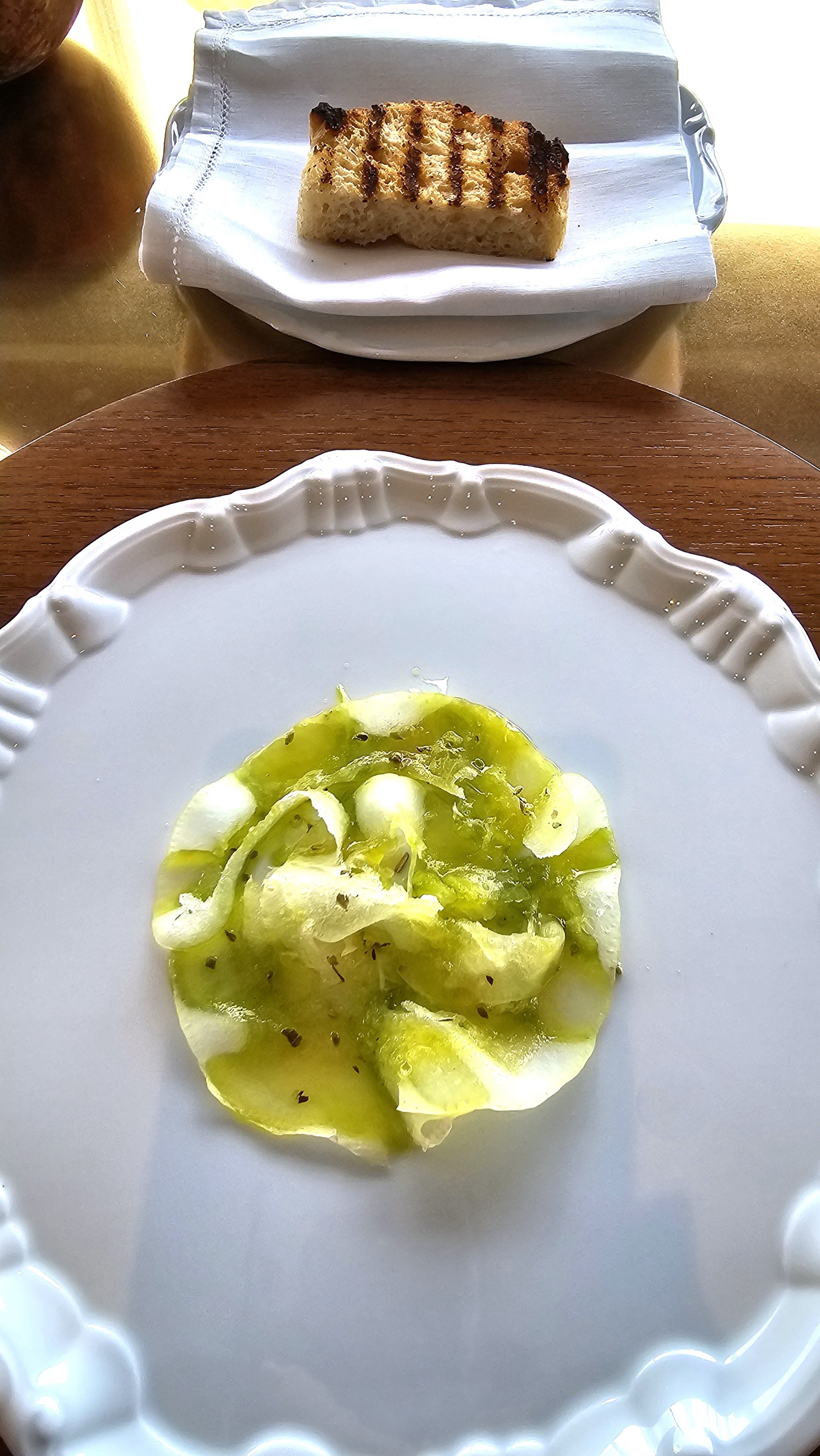 Un orto a pochi passi dal ristorante e una terrazza con una trentina di varietà di agrumi, gli offrono poi la possibilità di tendere alla sostenibilità del tutto, un intento che ritrovo anche in sala grazie a una mise en place minimale, senza tovaglie per non sprecare l’acqua e “plastic free”.