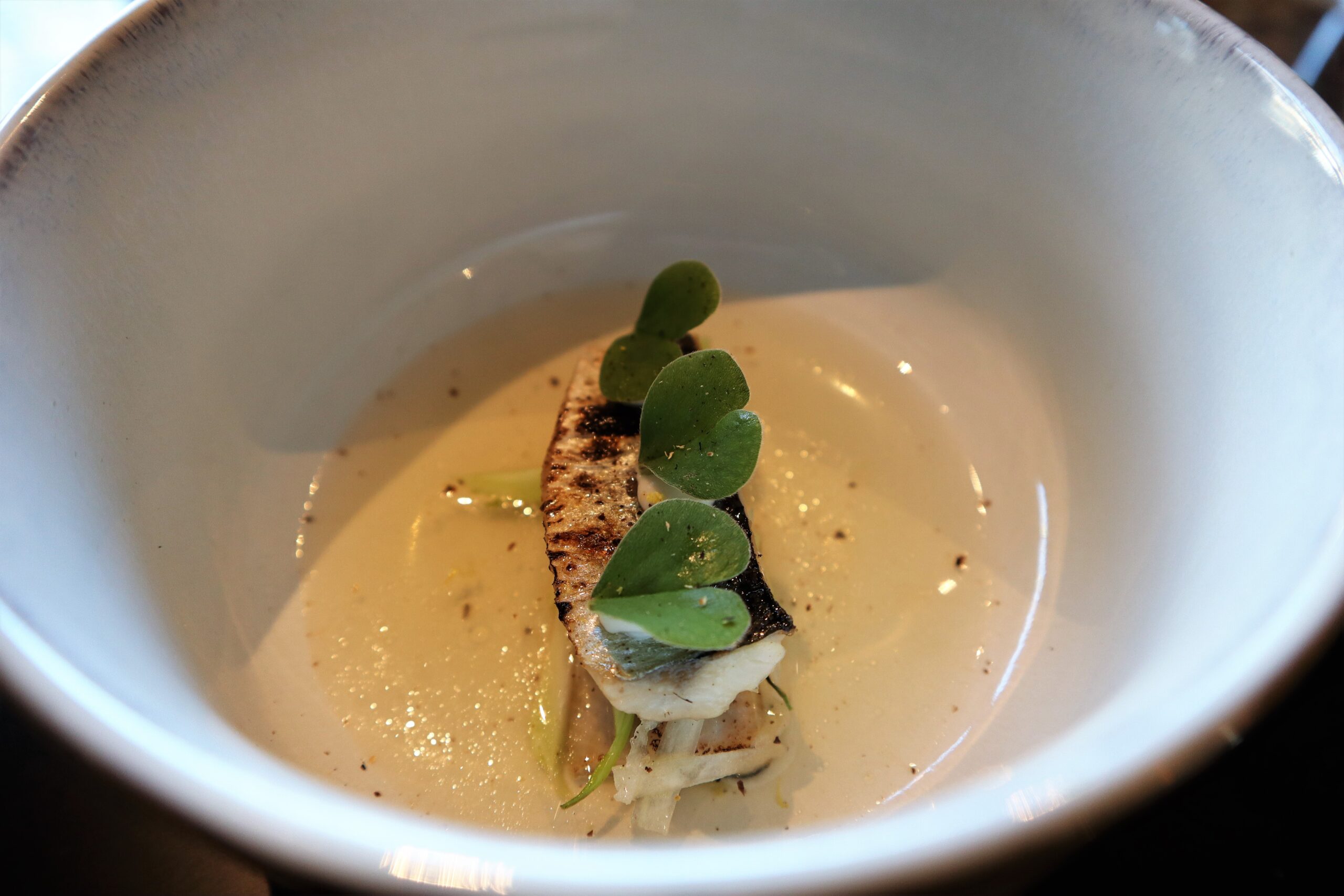 Agone, puntarelle, maionese alle acciughe, dashi al kaffir lime e scorza di limone nero del Libano. Un omaggio al lago d’Iseo attraverso la valorizzazione di uno dei suoi protagonisti