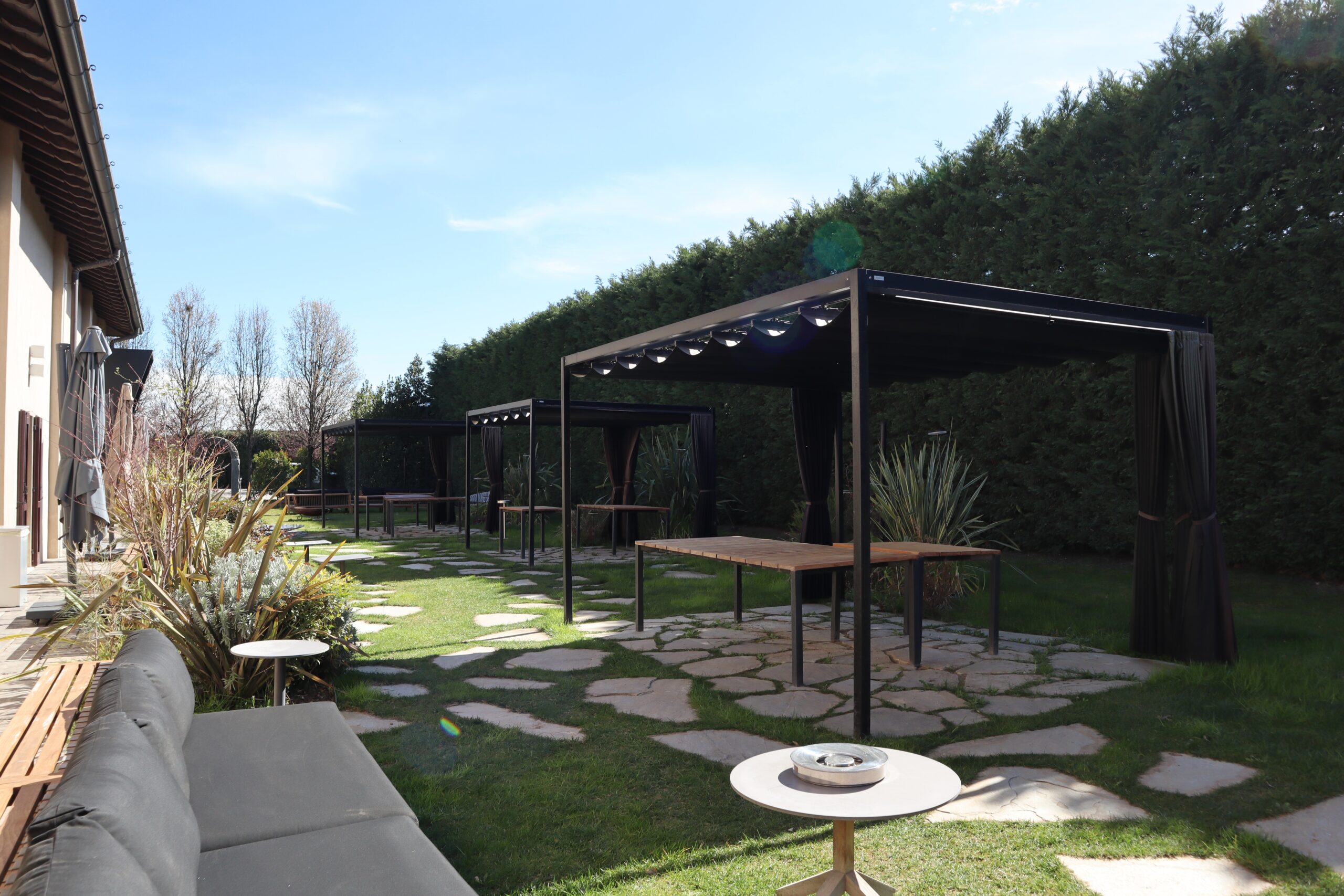 Il verde circonda tutta la struttura e ci sono spazi per mangiare all’aperto, delimititati da gazebo ben distanziati, dedicati sia al bistrot, Sottoforme, che al ristorante gastronomico. L’interno del ristorante prevede varie salette ognuna della quali si differenzia nello stile – Mi piacciono i tavoli rotondi! – e fanno parte della struttura, di proprietà di Atena, una società specializzata nella formazione professionale per aziende, privati e professionisti, anche quattro luxury suite. Ad accogliermi ecco il sorriso della bravissima maître e sommelier Elisa Redolfi. È lei la guida del personale di sala, giovane, dinamico e premuroso che si muove con nonchalance in piena sintonia con la cucina.  Una cucina concreta, essenziale, esteticamente curata dove si nota la grazia e l’eleganza di Arianna, vedi i cuoricini di petali di rose nel granchio o i fiorellini di daikon sopra gli gnocchi. Nei suoi piatti non mancano mai tecnica e originalità, due aspetti che ben si sposano con  la scelta degli ingredienti, sempre riconoscibili e dai sapori davvero intensi. Brava brava! Tra i due percorsi proposti, ho scelto Racconti.
