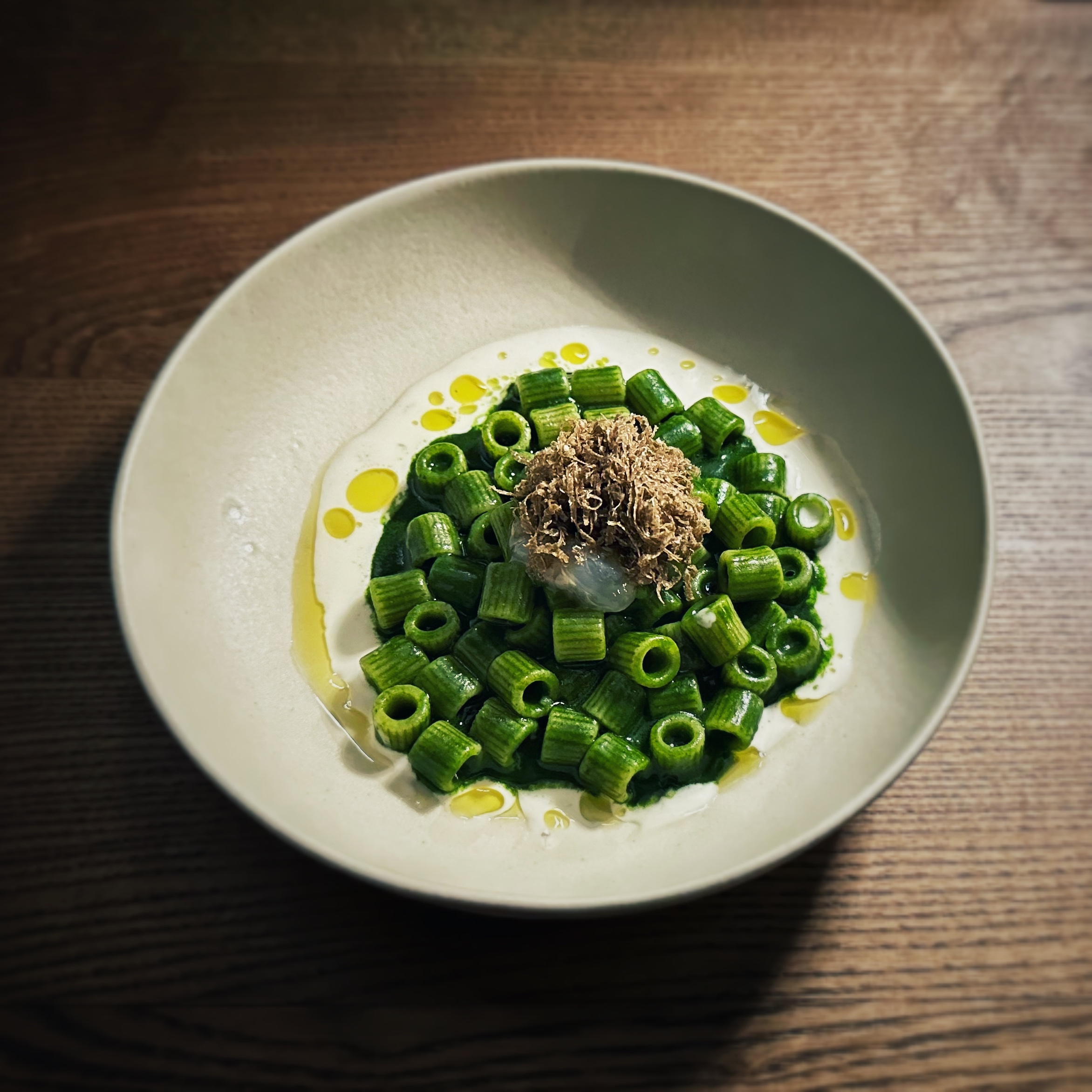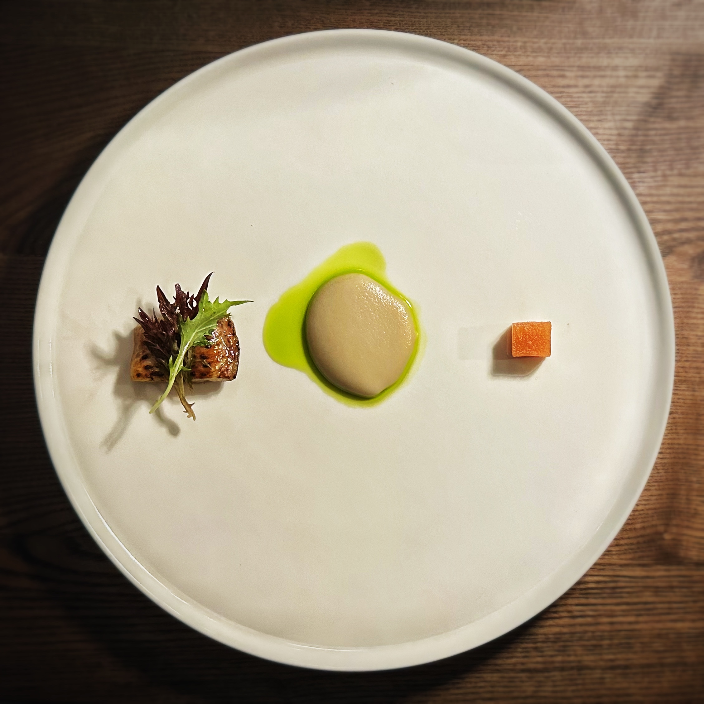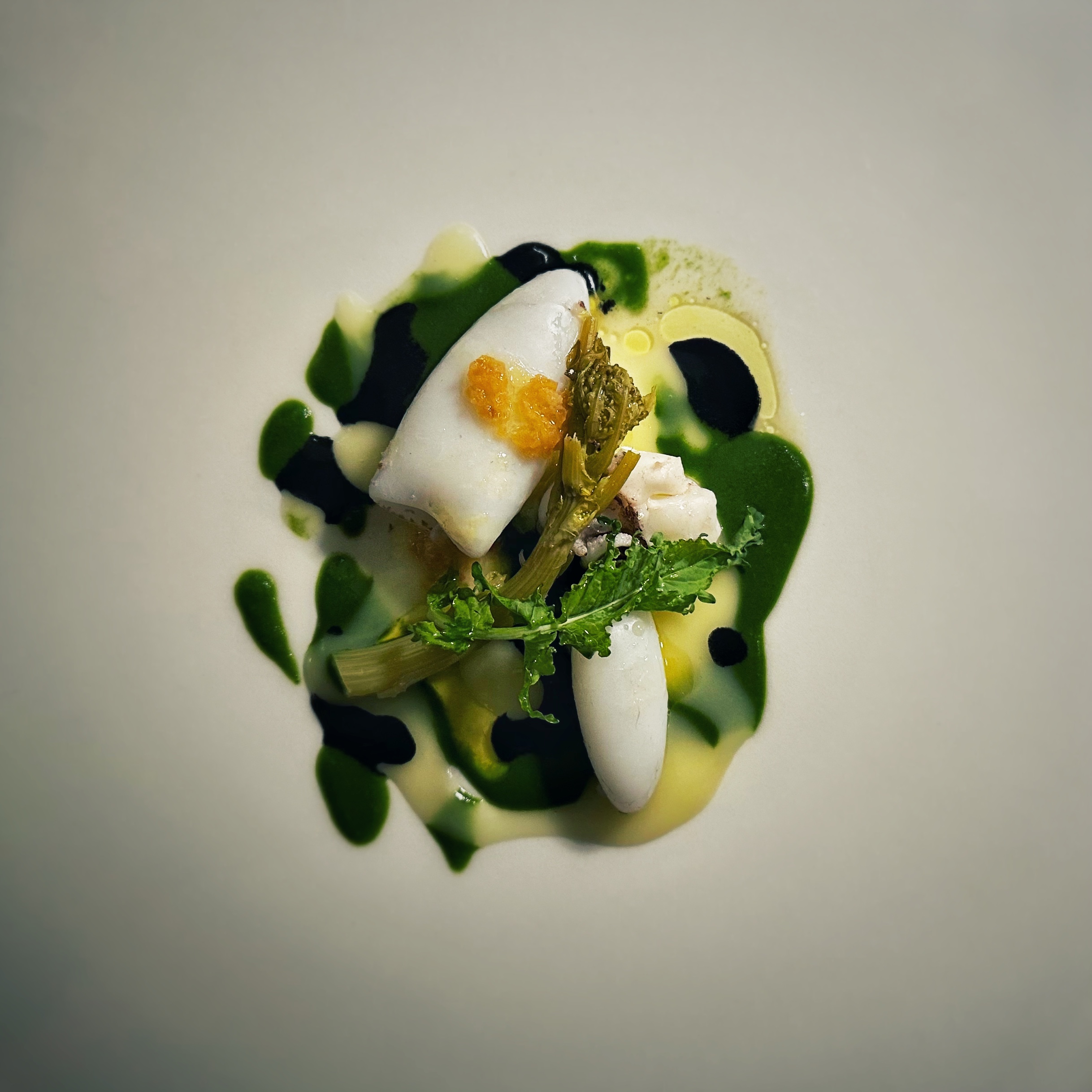 Ah, a voler proprio essere precisi servizio e vino sono rimasti un po’ nella penombra. La sala non mi è sembrata troppo preoccupata di empatizzare con la clientela, come se non ne avesse il tempo o addirittura avesse paura d’infastidirla con parole e premure. Per quanto riguarda il vino invece c’è stato un po’ di caos e non si è mai andati oltre basici commenti del tipo “questo ci sta piacendo molto”. Nulla sulla costruzione dell’abbinamento. Cosa che vista l’interessante scelta dei calici, in prevalenza naturali, proposti nel pairing ritengo davvero un peccato.