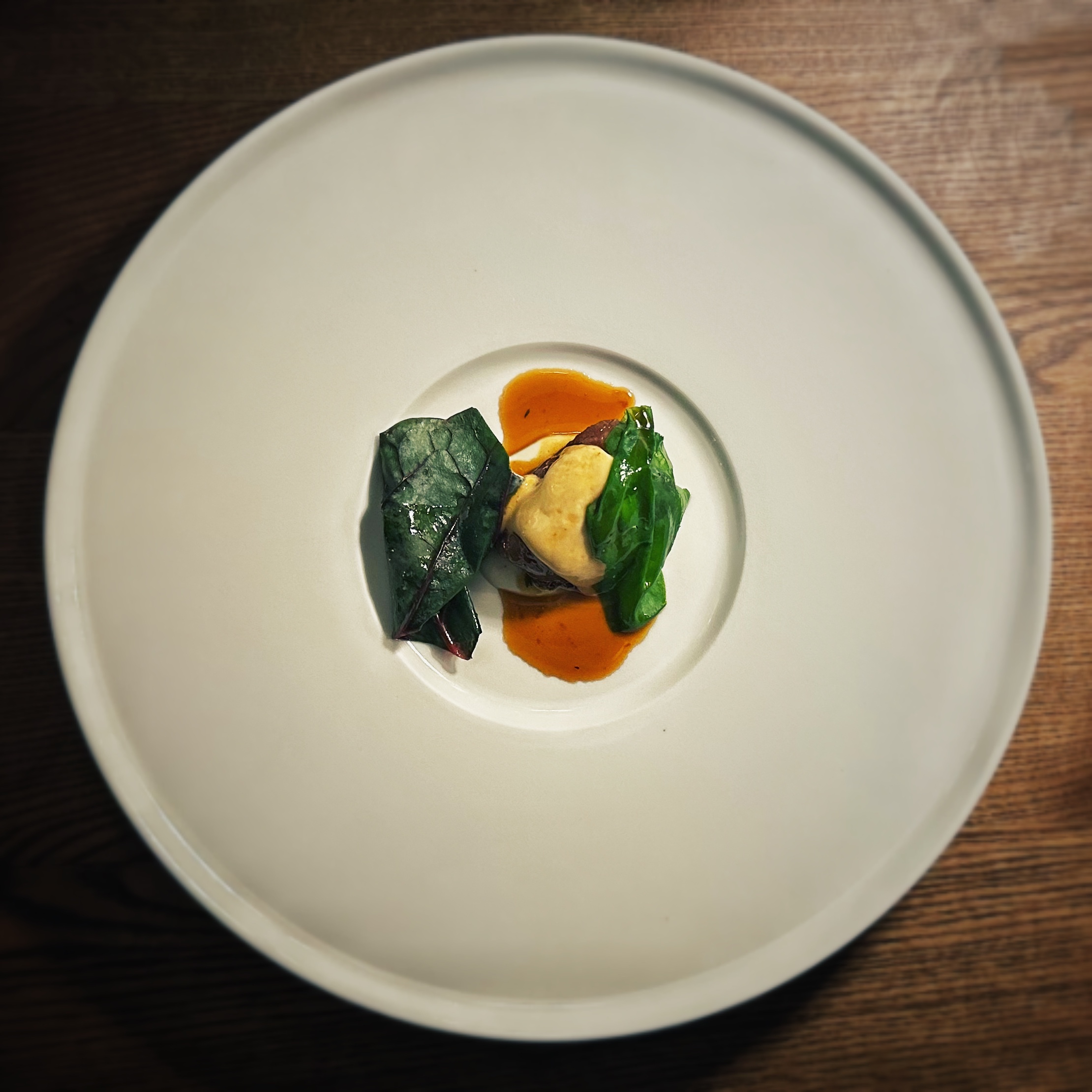 Animella, ostriche affumicate e bieta