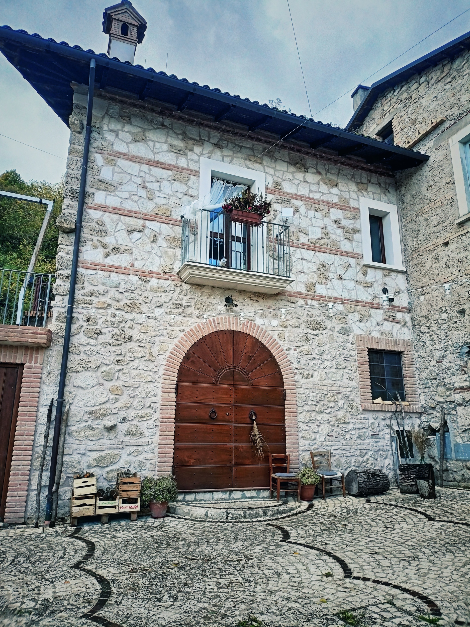 I nostri passi rompono il silenzio. Attraversiamo il cortile ciottolato dritti verso il grande portone a due ante in legno, delineato da un arco in mattoncini rossi che segna il confine della loro casa, ristrutturata prima del sisma dalla nonna paterna di Claire.