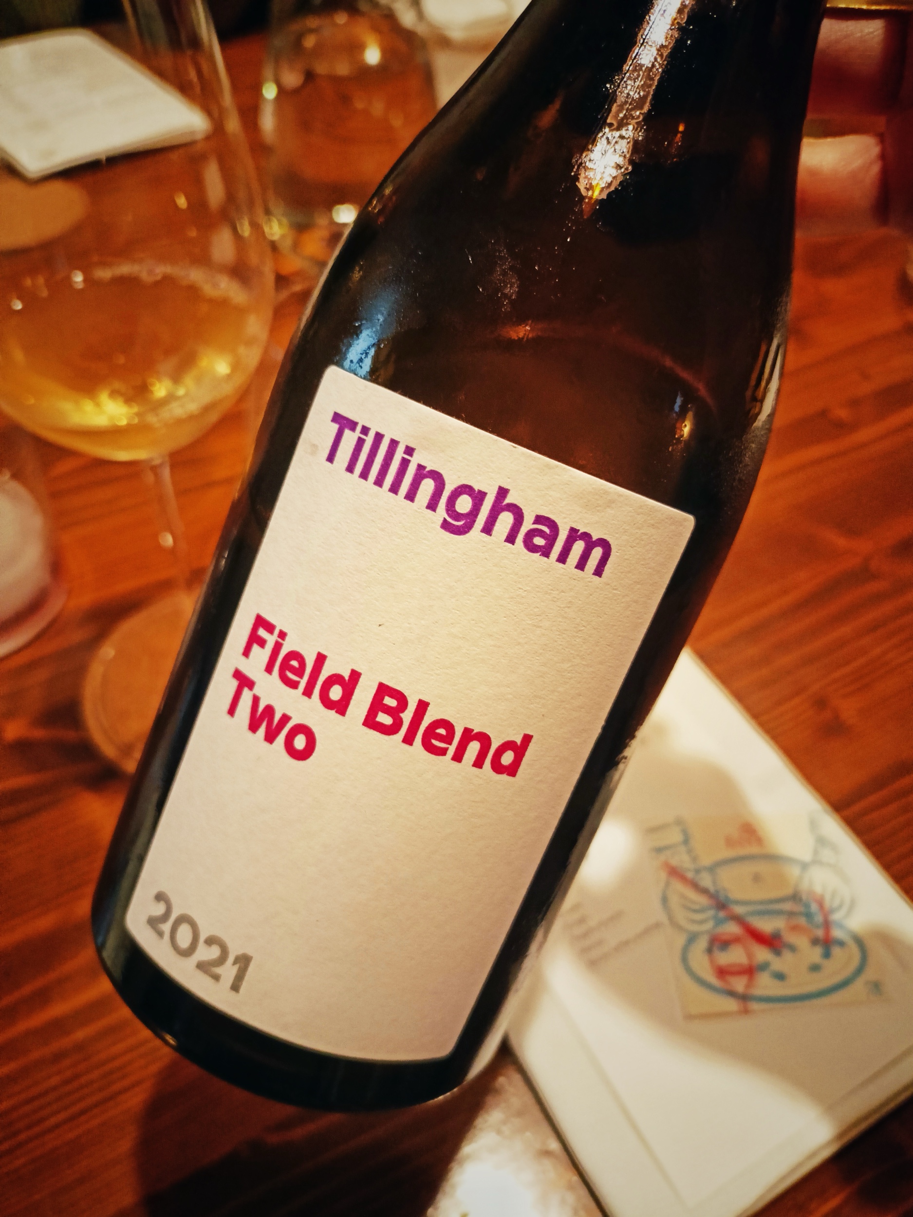 Una petit bouteille (50 ml) di Field Blend Two 2021 della neonata cantina Tillingham, produttori sperimentali che hanno iniziato a imbottigliare nel 2020 nell’omonima località nell’East Sussex, non lontano da dove proviene Dan che è originario dell’Essex. Un rosato nato dalla mescolanza di uve bianche e rosse che ha lo scopo di raccontare una determinata parcella: quasi rubino, fruttato e vibrante, coi suoi 10,5 gradi alcolici assai beverino. Il nostro primo assaggio di vino inglese, finalmente!