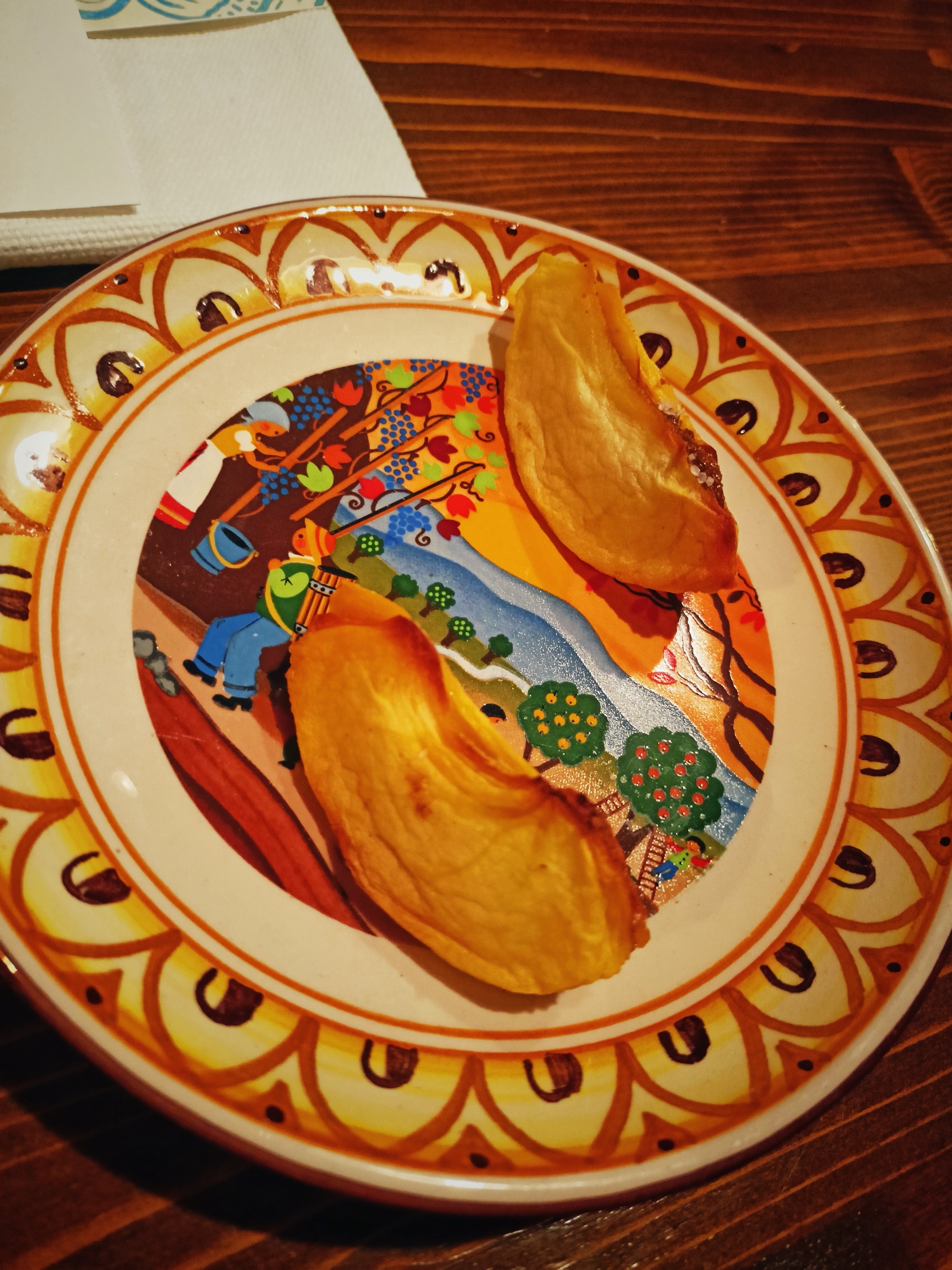 Agnolotti ripieni di patate serviti con il brodo ottenuto dalle bucce delle stesse patate cotte al forno, funghi e grasso di maiale. Una personificazione della loro filosofia zero waste che ci ha lasciato senza parole. Fossimo davvero a teatro qui partirebbe un lungo applauso!