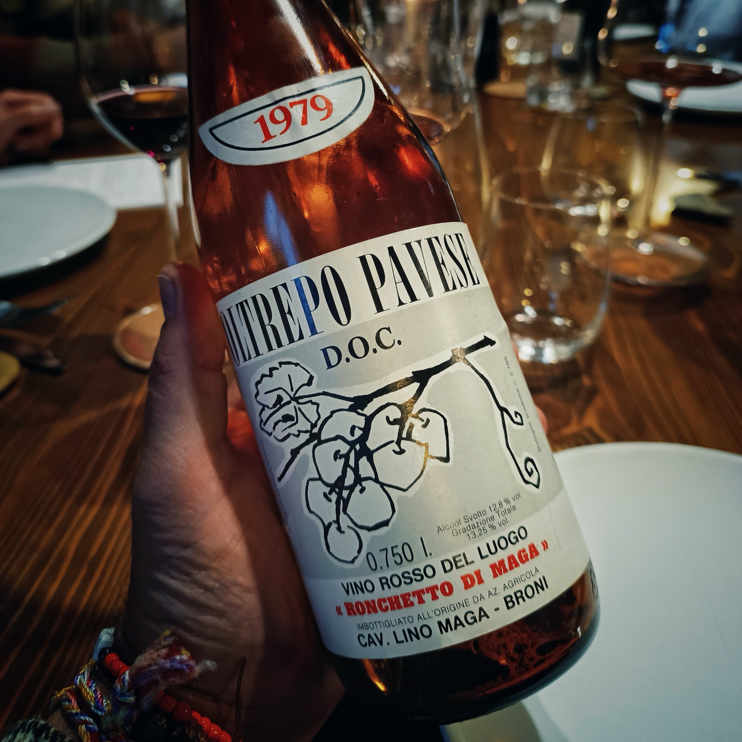 È finita con una bottiglia di Oltrepò Pavese “Ronchetto di Maga” 1979 dello scomparso cavalier Lino Maga. Beh, nonostante siano passati più di quattro decenni, è risultato ancora assolutamente vivo, elegante, succoso e speziato. L’abbiamo degustato lentamente, quasi in silenzio, consapevoli che potrebbe essere stata l’unica occasione di averlo tra le mani.