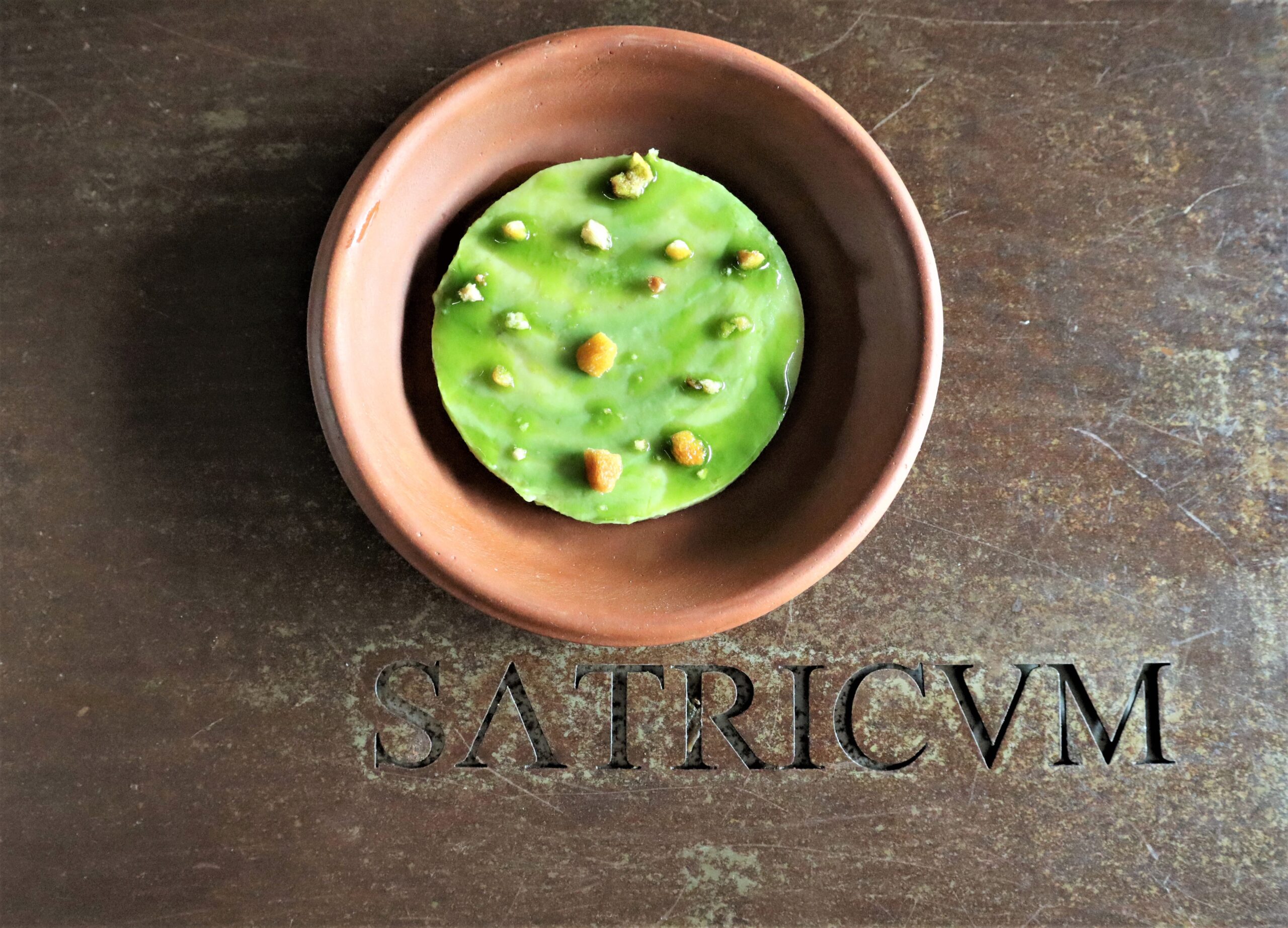 Nelle campagne dell’Agro Pontino, tra le vigne e i campi coltivati del borgo di Le Ferriere, sorge Satricvm il ristorante di Massimiliano Cotilli e della moglie Sonia Tomaselli. È qui che, con alle spalle un ricco bagaglio di importanti esperienze, anche internazionali, hanno deciso di stabilirsi per aprire il locale dei loro sogni, un luogo immerso in un incantevole giardino dove tutto è molto curato, dalle luci, alla particolare mise en place in cui la tovaglietta è una lastra metallica con l’insegna del locale.