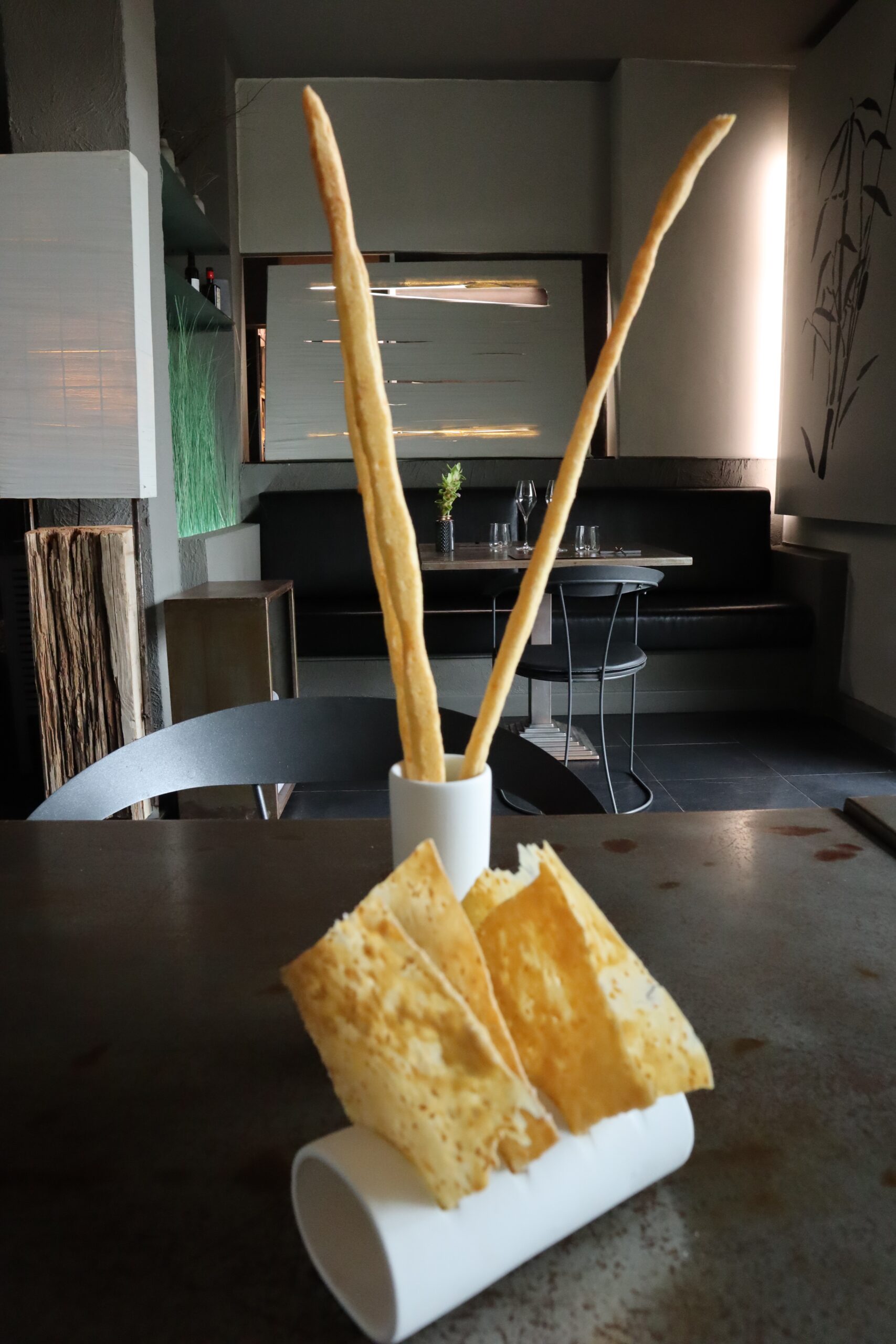 Astice al vapore, tom yam in sfoglie croccanti e gelato. Gelato decisamente da wow, bello piccantino e speziato. Ciabattina con farina integrale n. 9 e lievito madre per la scarpetta