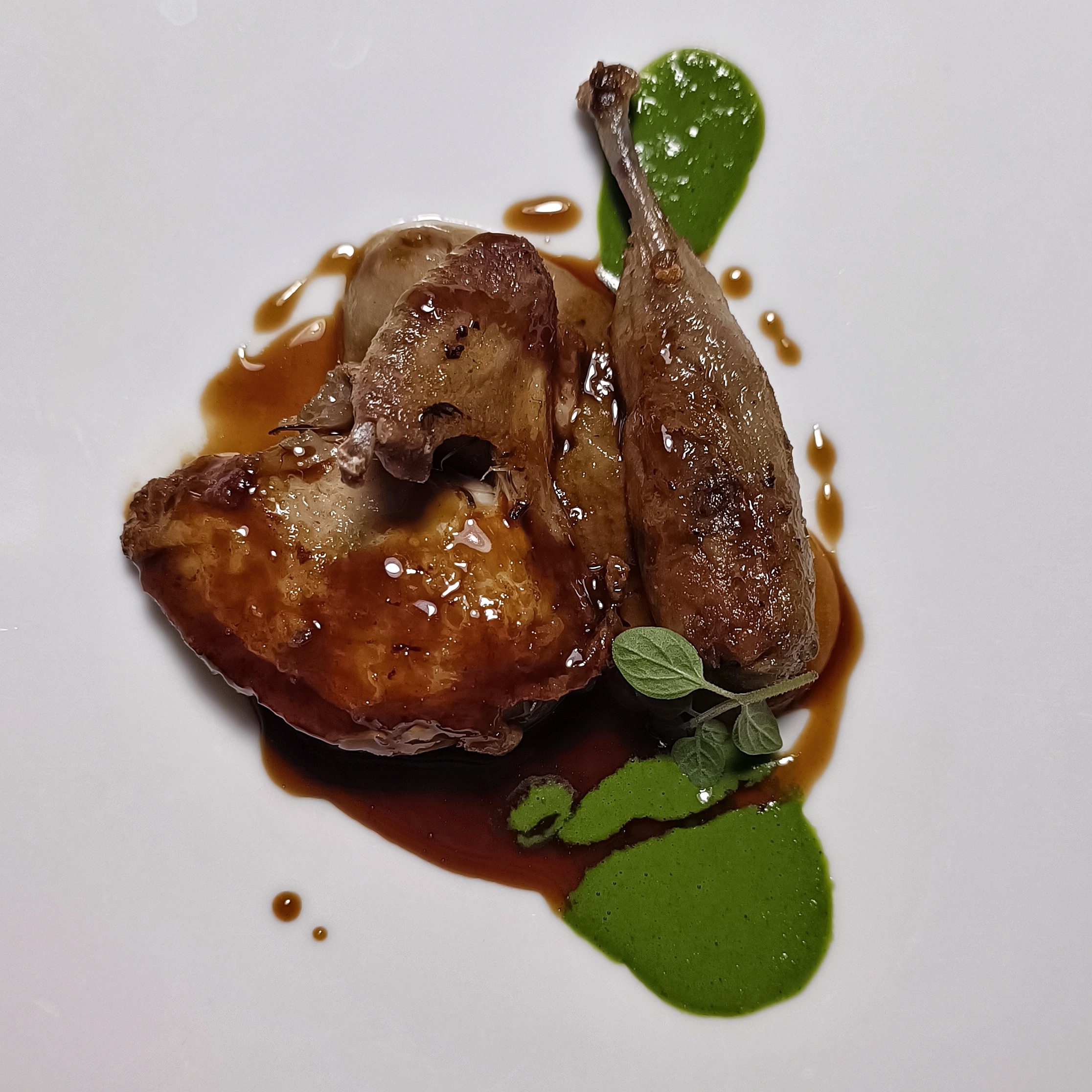 Quaglia disossata, genovese di cipolle, uvetta e albicocca