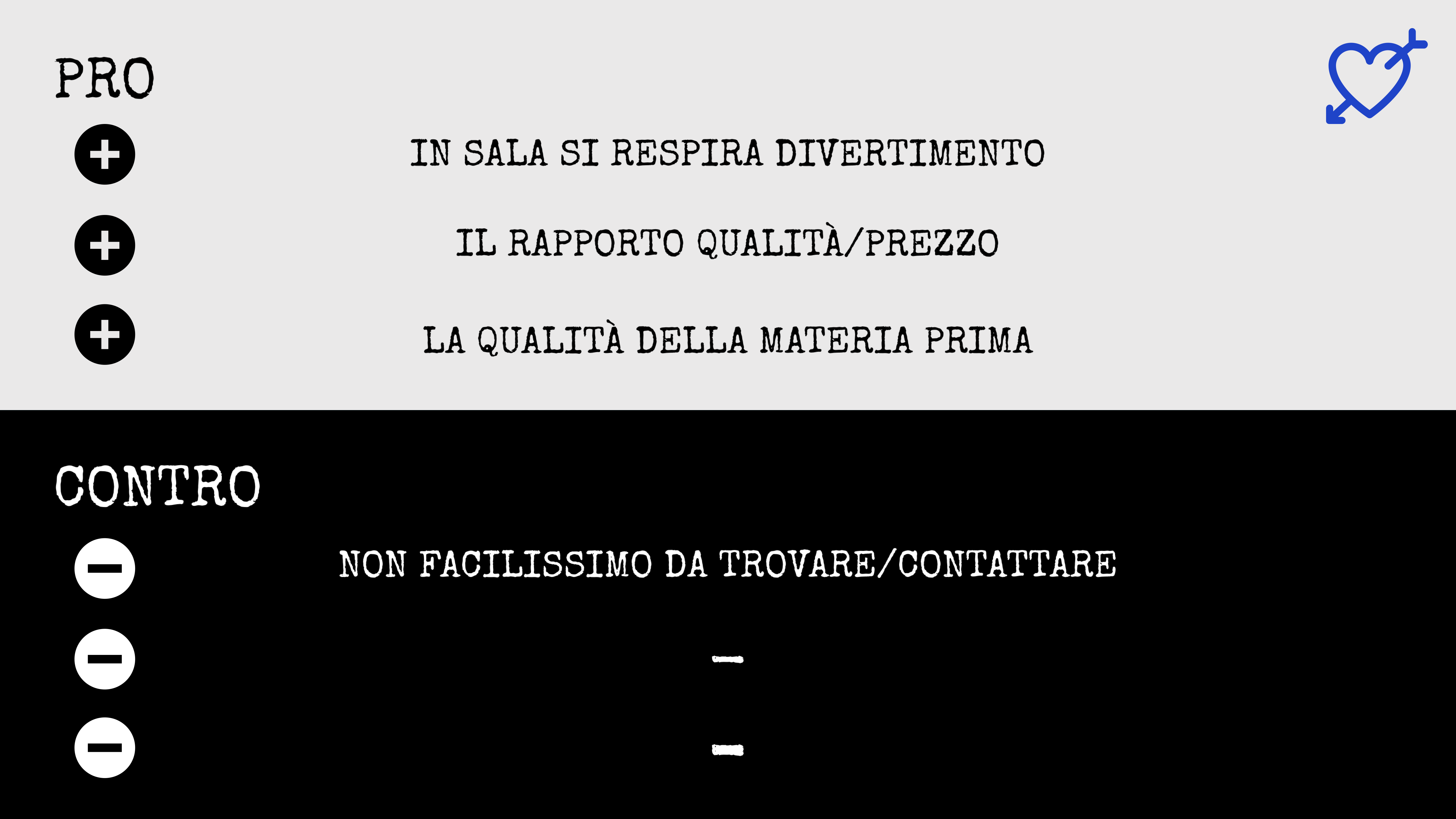 La lavagnetta esterna scritta a mano: l’unico indizio di essere arrivati, vista l’assenza di un’insegna