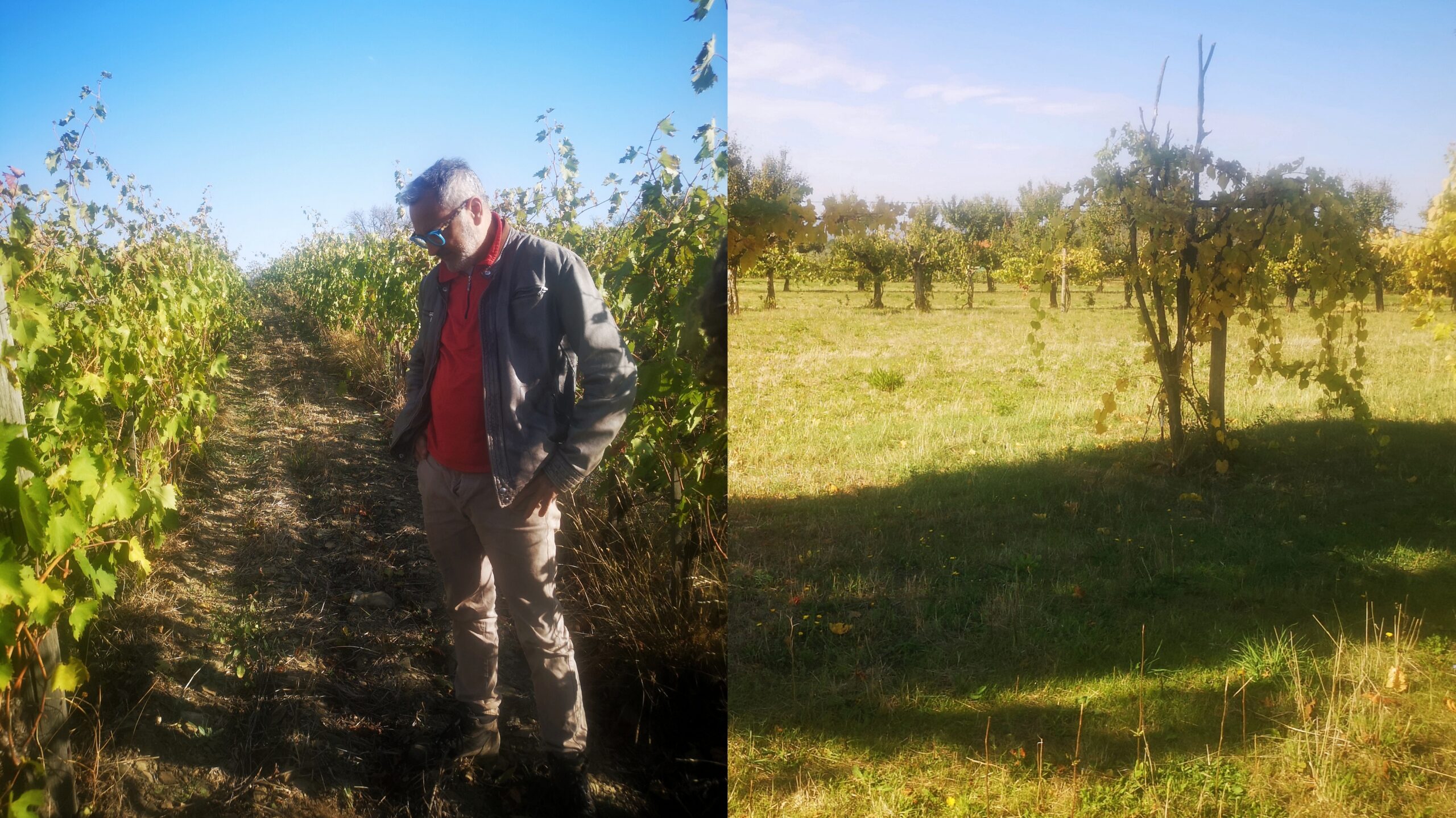 Arnaldo Rossi tra i filari e le viti maritate da cui produce il Cibino