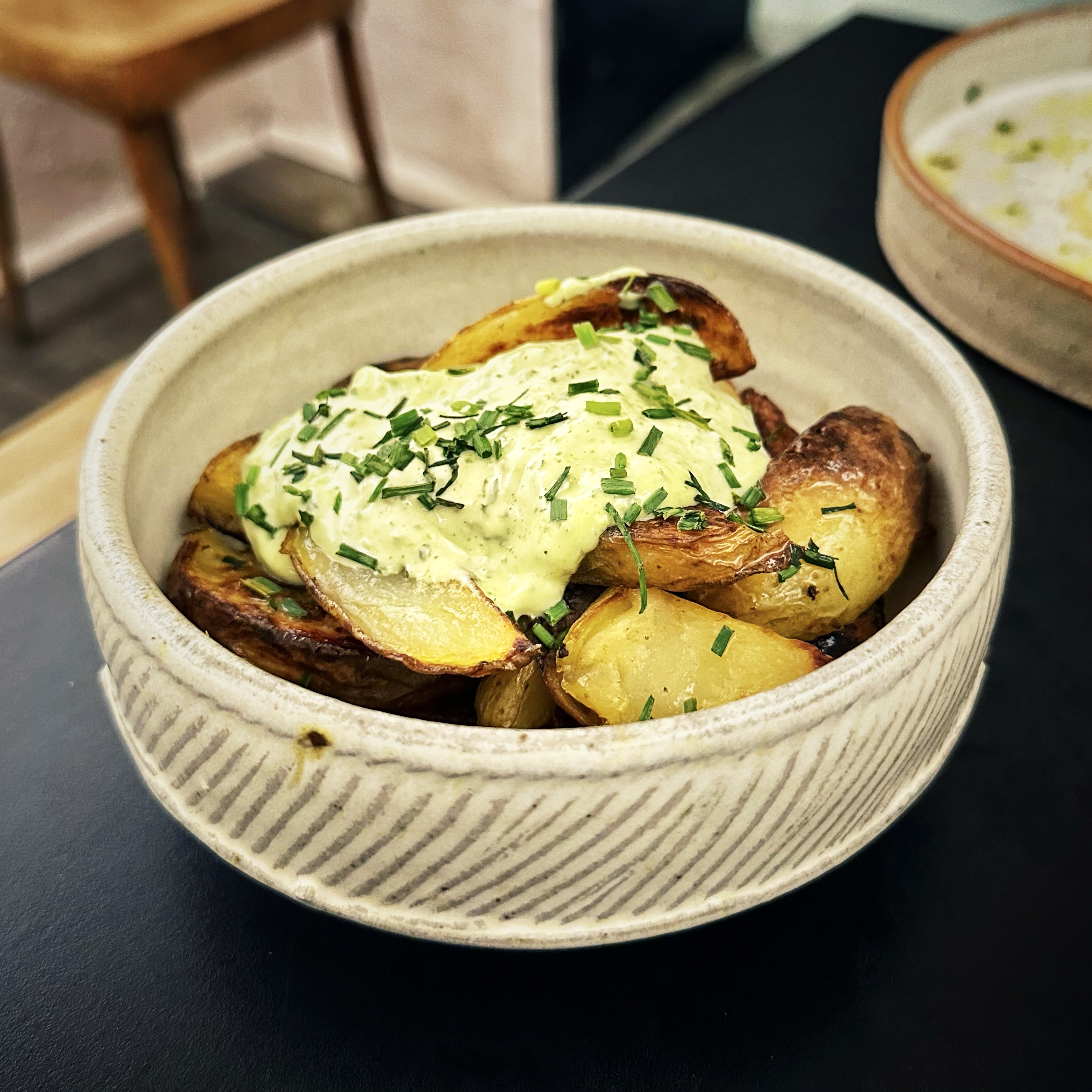 Papas bravas e maionese all’erba cipollina