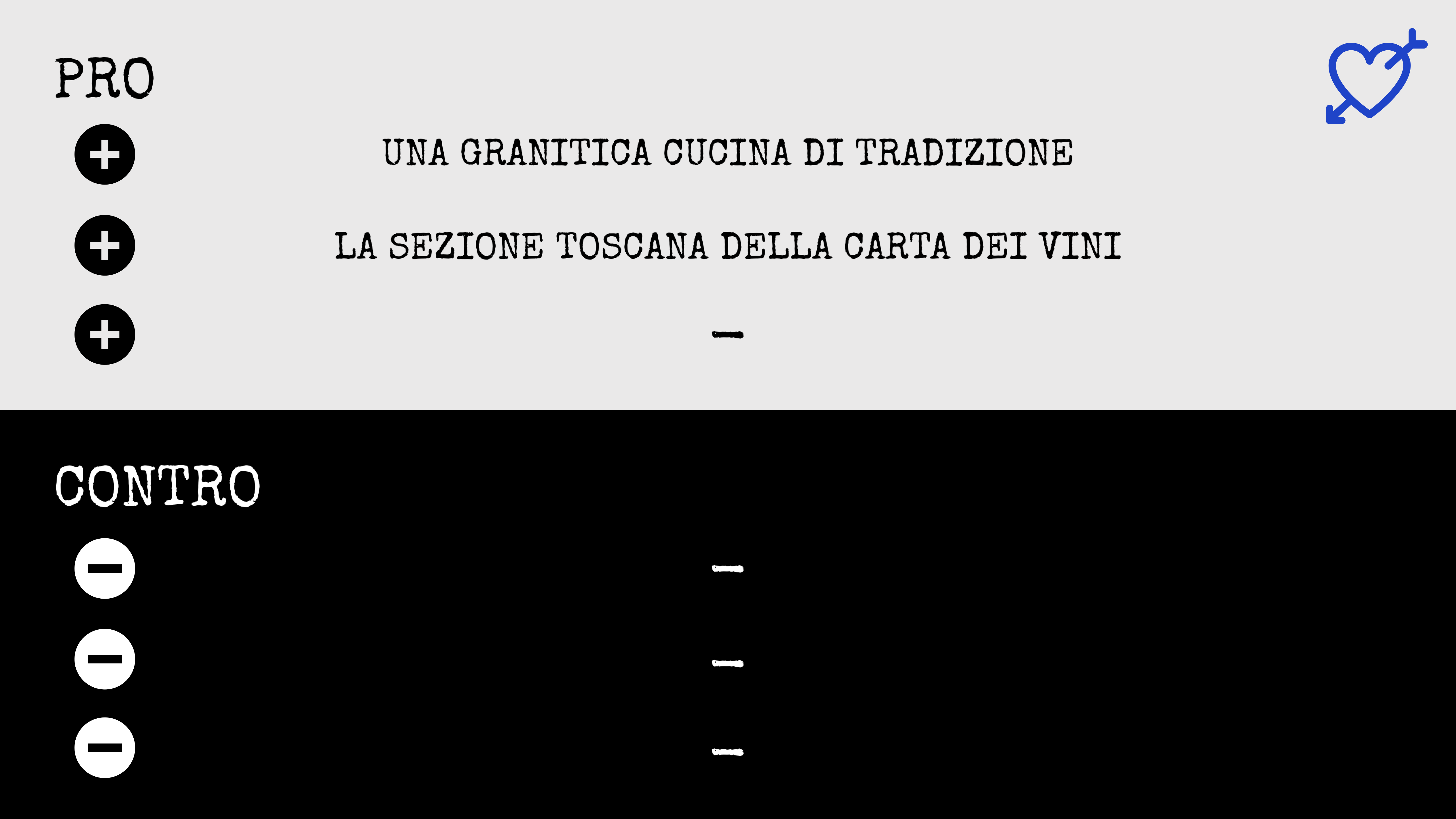 La carta dei vini, curata da quello che potresti conoscere come Il Sommelier Informatico (dai un’occhiata qui!), è una splendida mappatura toscana, del Chianti in primis, ma non solo, dove, se non avessi avuto tutto quei chilometri da affrontare per tornare a casa, mi sarei perso più che volentieri. Molto interessante ed inclusiva anche la proposta giornaliera articolata in calici, quarti di litro e bottiglie intere. Insomma, ci si diverte a prescindere dal proprio portafoglio. Svariate poi le possibilità per gli amanti del “naturale”, dovessi scommettere sono inoltre convinto che in cantina si nascondo altre sorprese oltre a quelle indicate in carta.