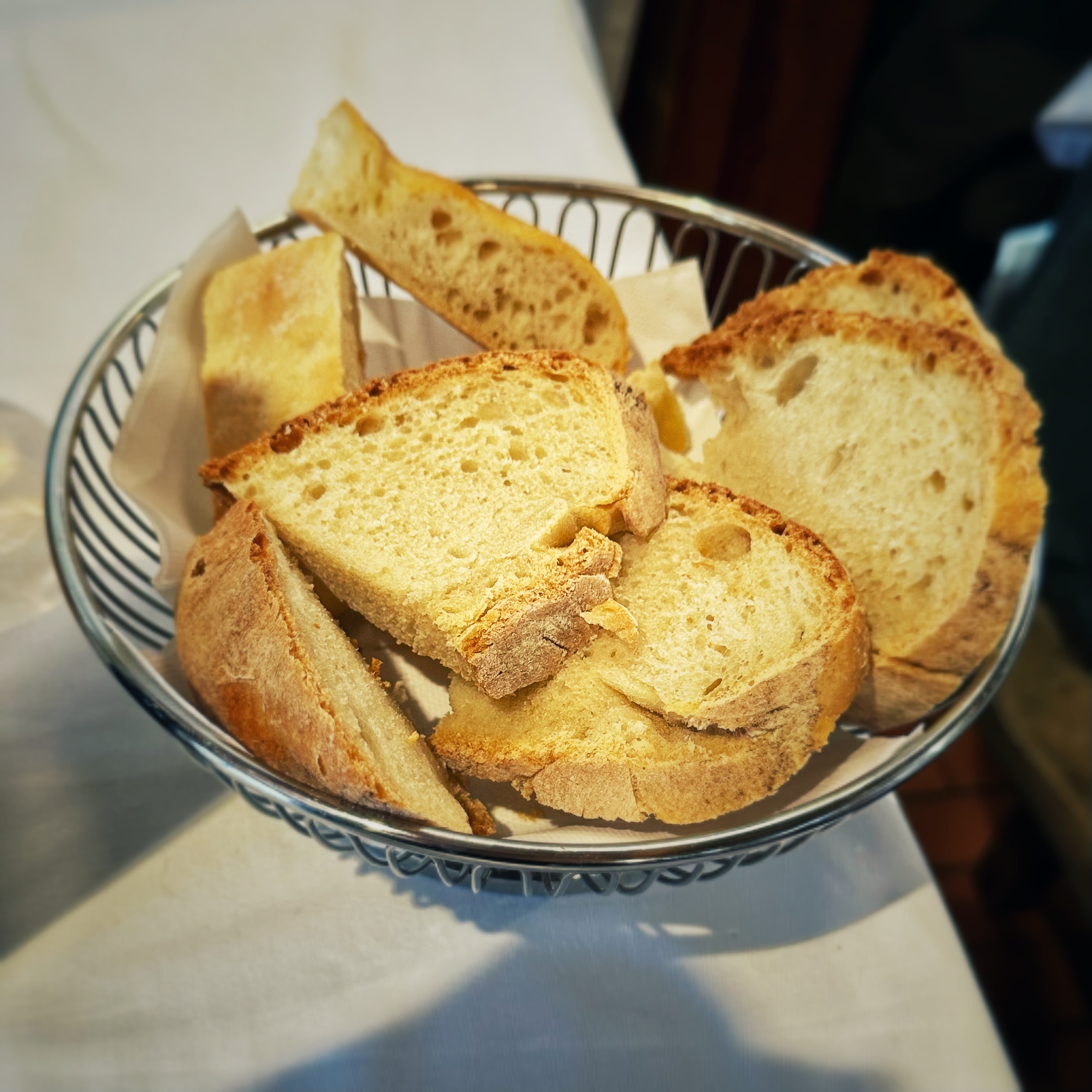 Beh, trovandosi sulla via Pistoiese, trovare parcheggio non è mai un problema. Oltrepassata la zona bar/tabacchi situata all’ingresso, molto affamati (eravamo in due), siamo stati fatti accomodare in veranda, una delle salette che compongono lo storico esercizio, probabilmente la meno elegante e pregna di storia (e di vino), ma comunque accogliente anche grazie alla luce che nelle belle giornate filtra dalle vetrate.